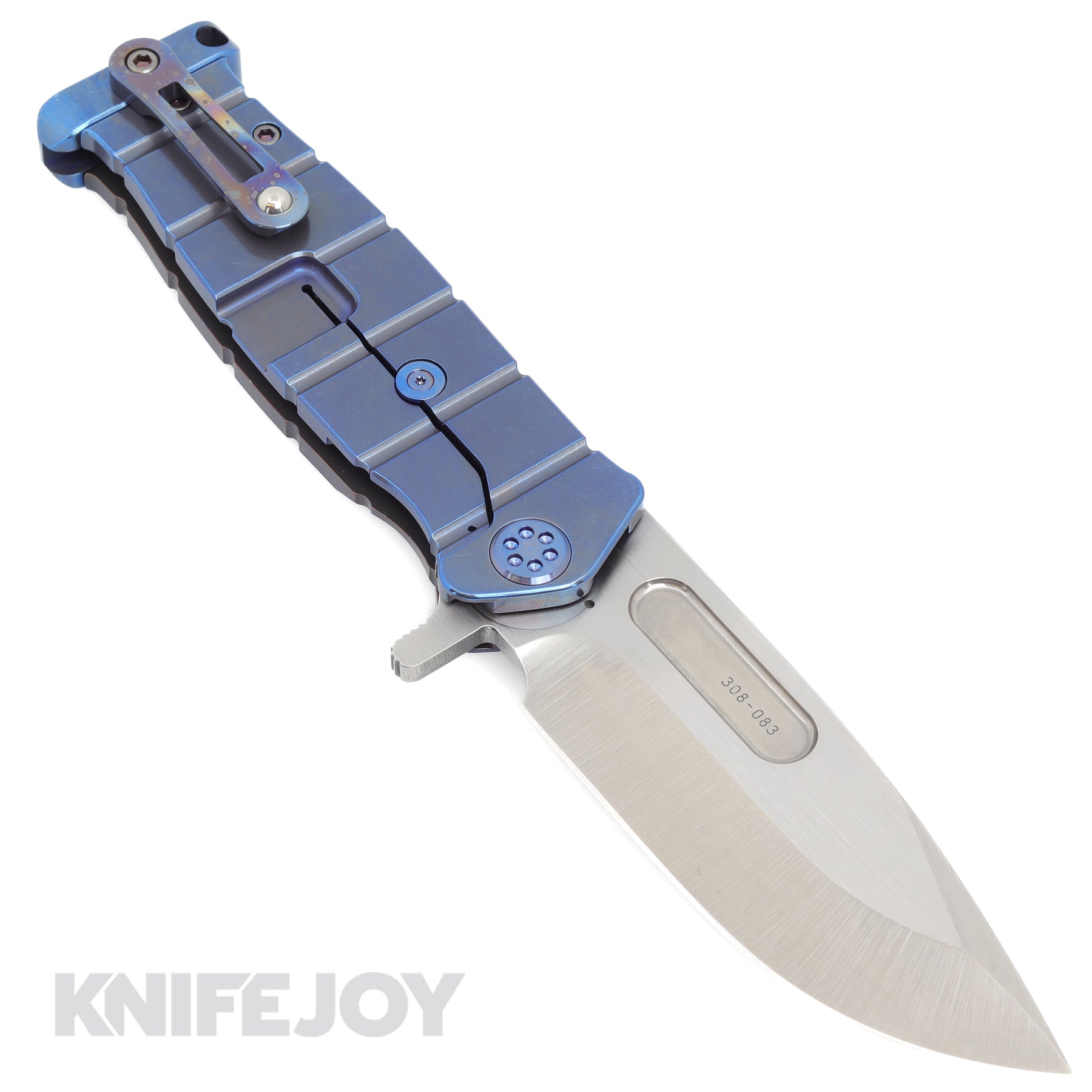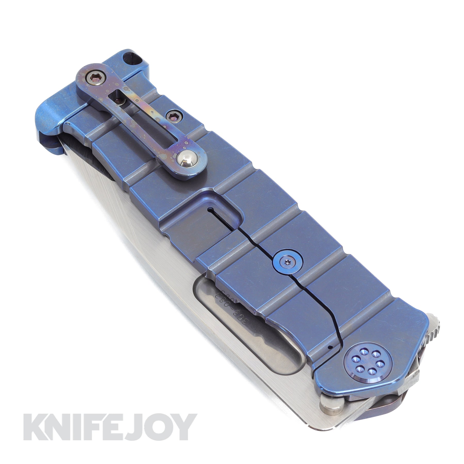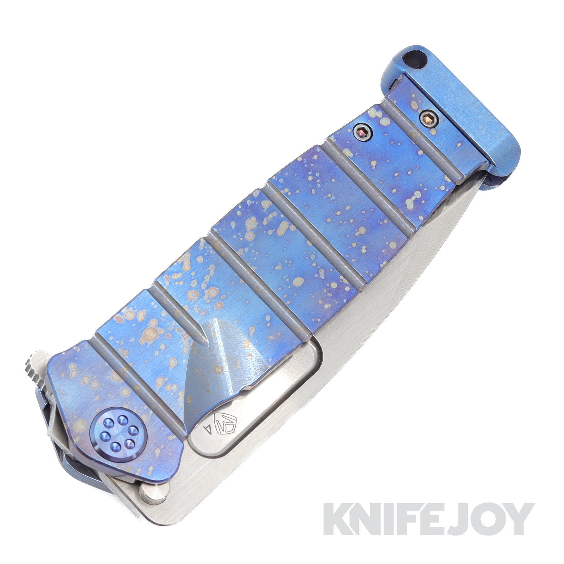 The knife is a perfect companion piece to the fixed “Fighter” and we call it the “The Fighter Flipper.”  This is a unique mix of Titanium components with the very best blade of S45VN heat treated to HRC 58.  This is a big, manly knife that’s as comfortable working, as it is cruising around town in your pocket.  There is so much going on with this knife it’s hard to take in: from the retro milling on the handles, drop-point blade, and integral pommel, to the bearing pressed into the one-of-a-kind pocket clip.  There truly is NOTHING like the Fighter Flipper™ in the knife world.