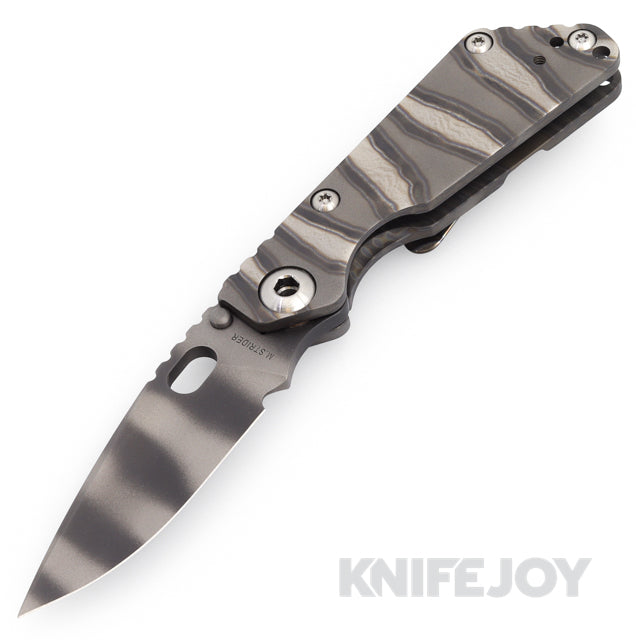Mick Strider Custom Knives JVA Tiger Striped Blade with DSS Titanium Handles