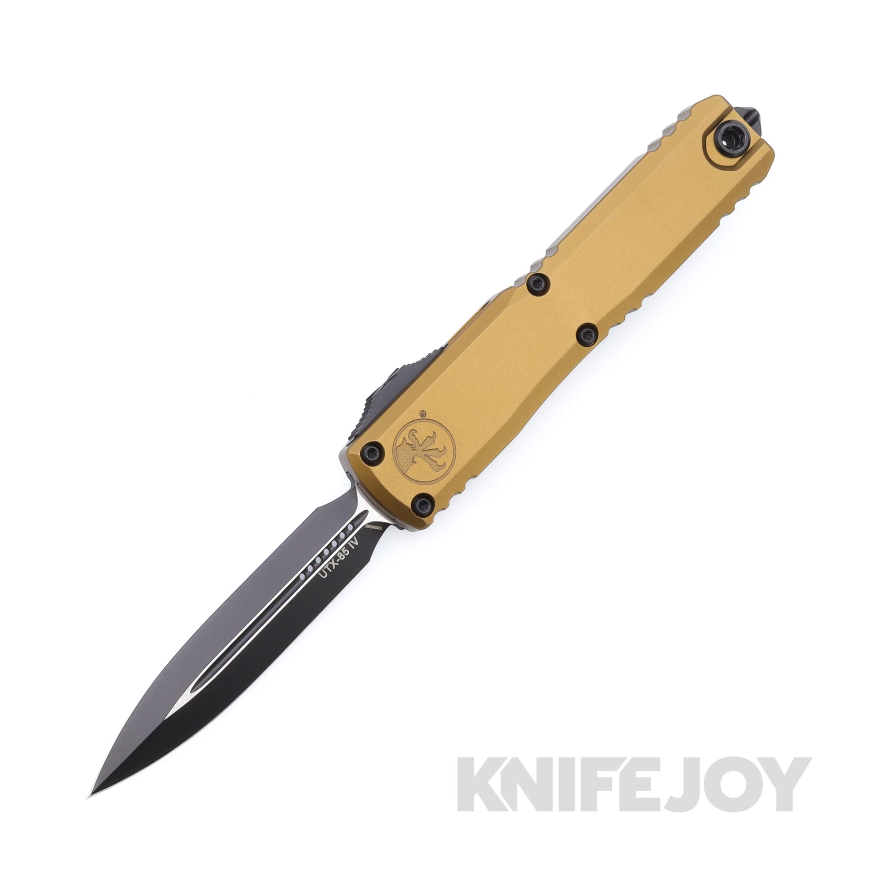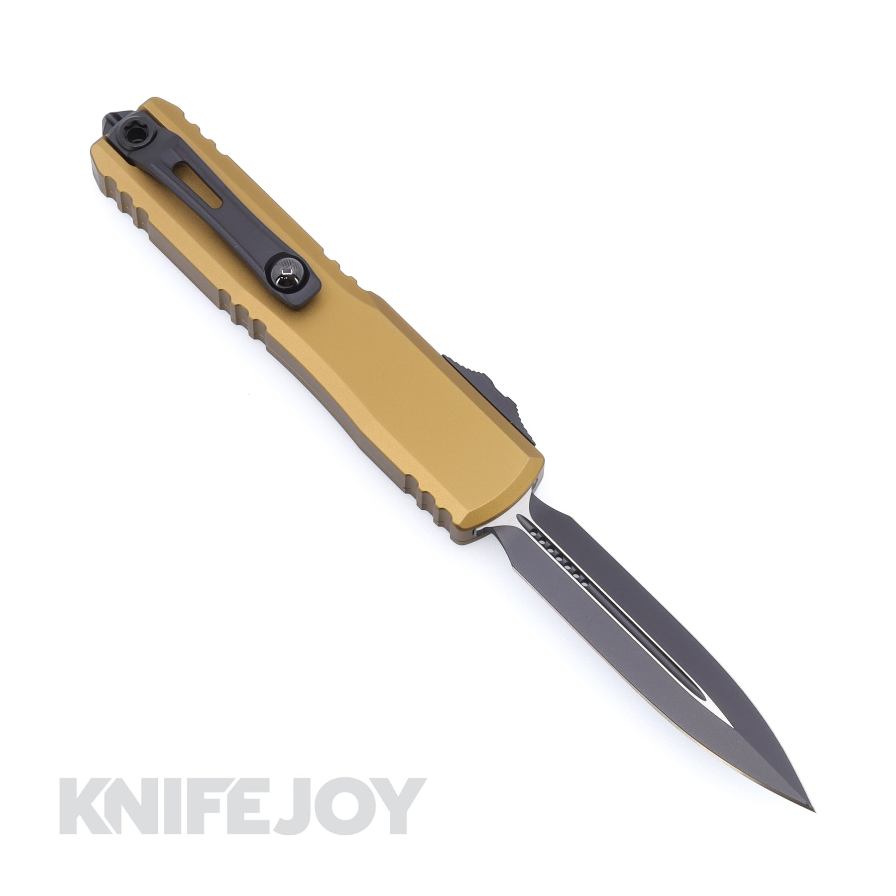 MICROTECH 11224-1TA Ultratech Gen IV OTF Auto Double Edge Black Standard Blade with Tan Aluminum Handles