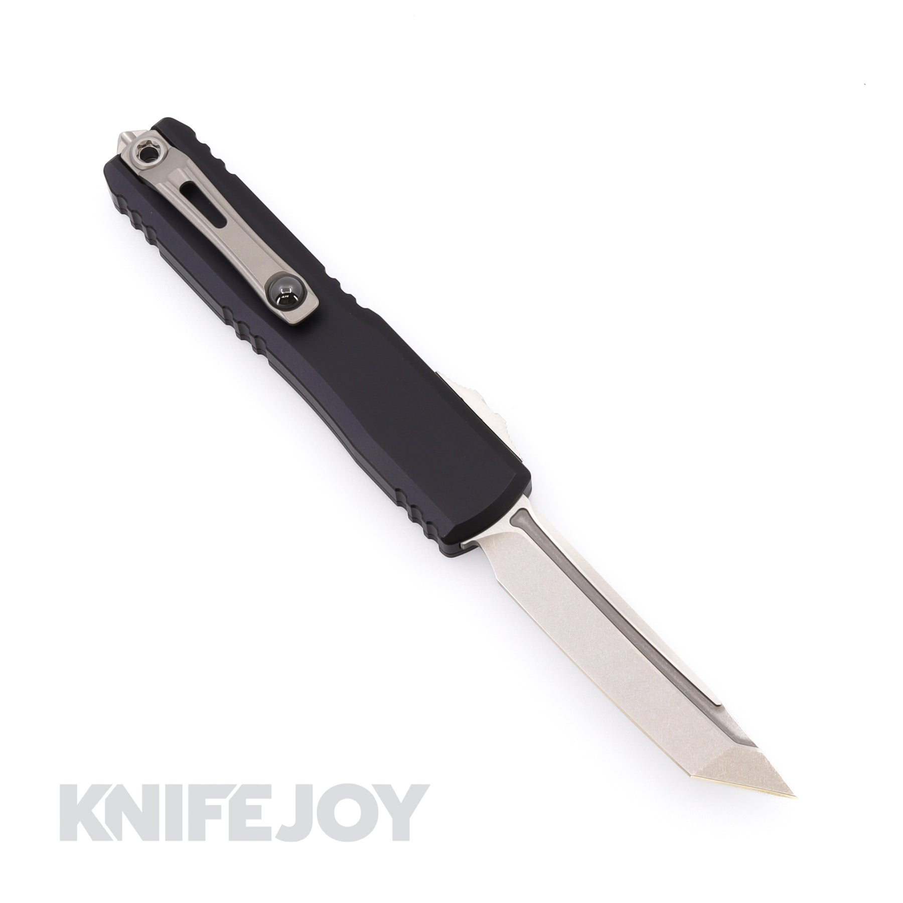 MICROTECH 11234-10 Ultratech OTF GEN IV Auto Tanto Edge Stonewash Standard Blade with Black Aluminum Handles
