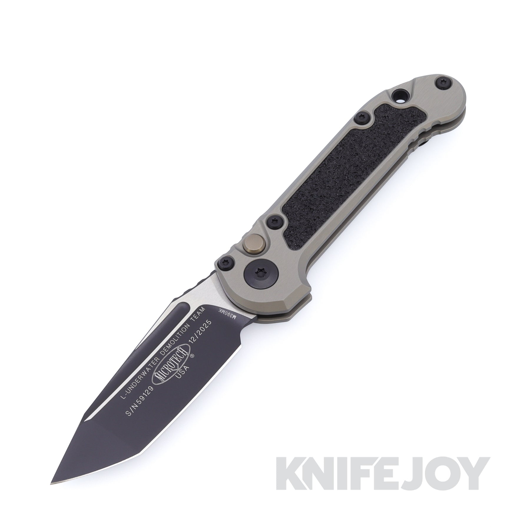 The 3.5-inch black M390MK blade delivers strong, tactical cutting performance with a reinforced tanto profile. A push-button automatic mechanism with a button lock provides consistent deployment and secure lockup in a compact 6061-T6 aluminum frame built for daily use.