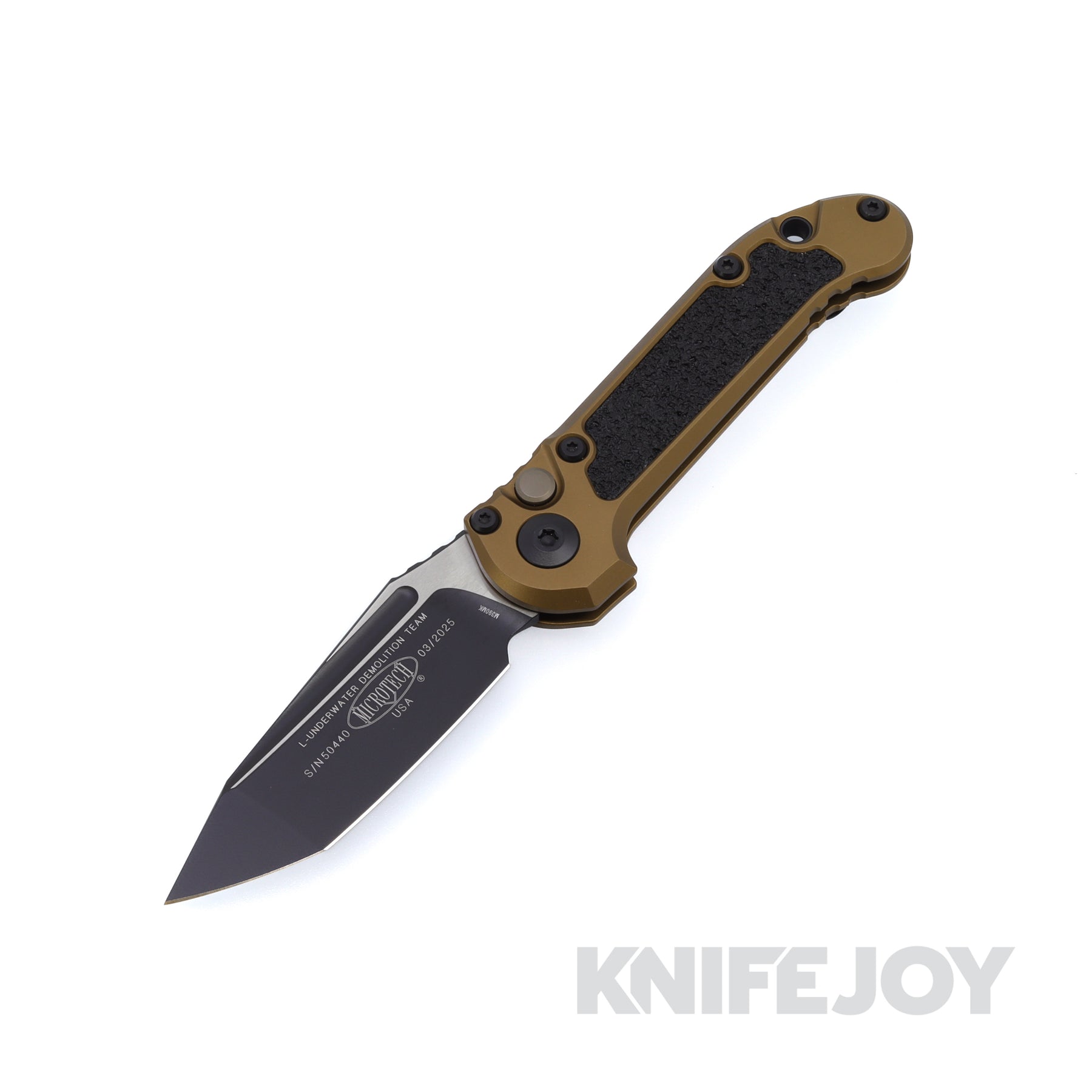 As pioneer of the Microtech® folding knife line, the UDT was created in 1995 and has evolved to be an exceptional combination of form and function. The first prototype models featured rubber Kraton inlays and were available in small, medium, and large sizes. These models were later consolidated to a single size, featuring a grooved, contoured aluminum handle with jimping along the top of the handle that carries onto the spine of the blade. The LUDT® boasts an explosive deployment mechanism not commonly found in a knife of this size.  New features for the Gen III include: grip inserts,  standardized Torx screws and Silica Carbide bearings.