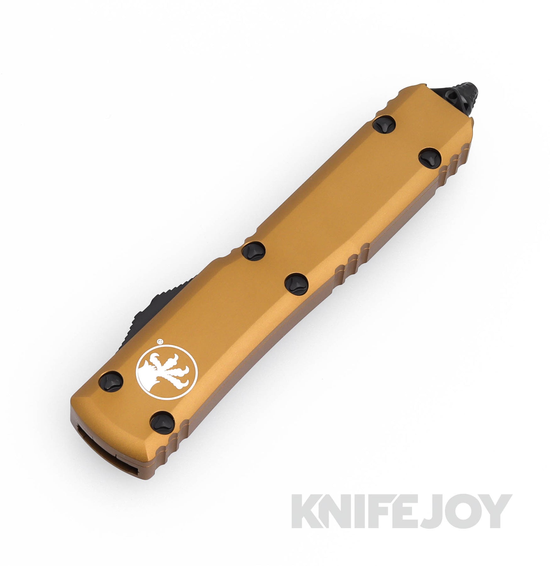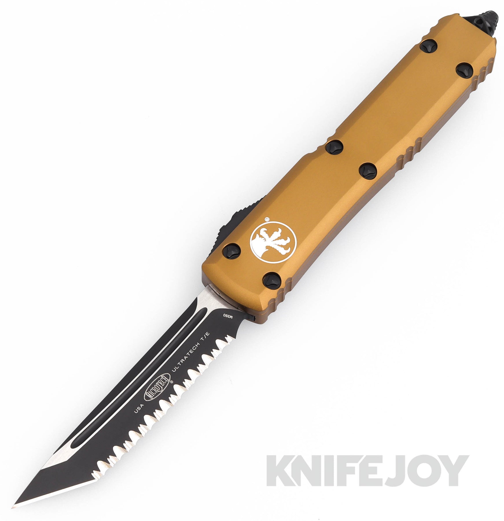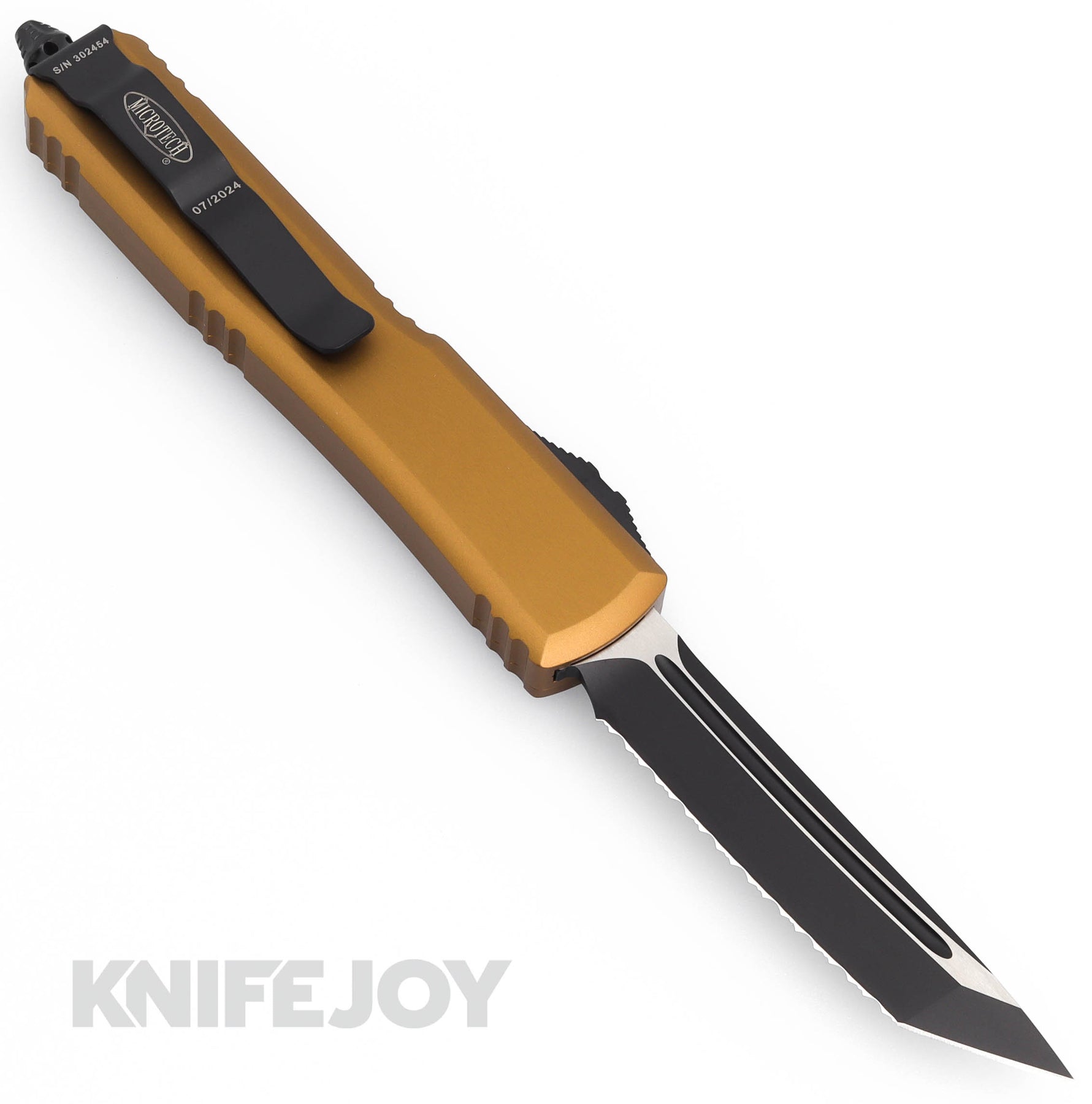 MICROTECH 123-1TA Ultratech OTF Auto Tactical Black Tanto Full Serrated Blade with Tan Aluminum Handles