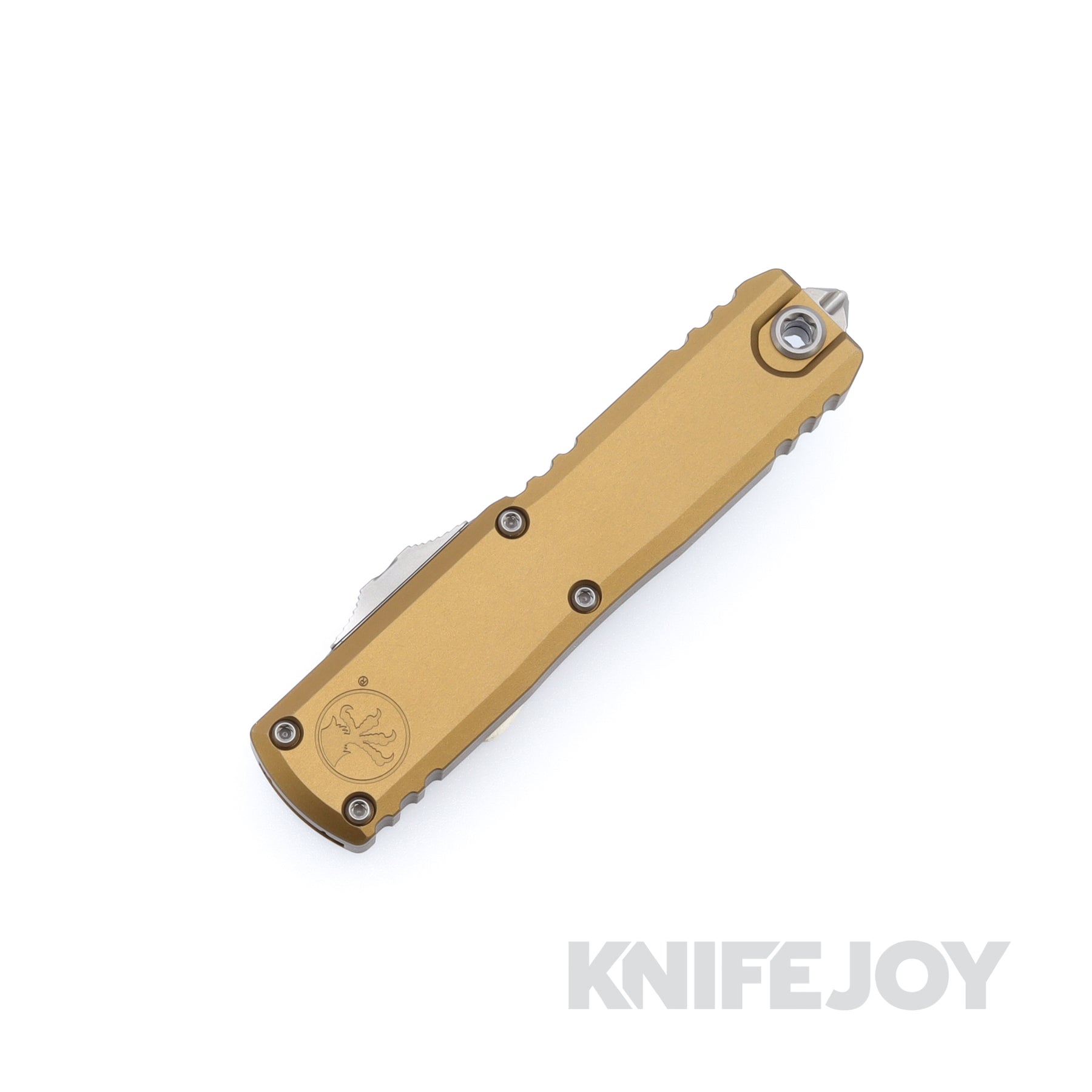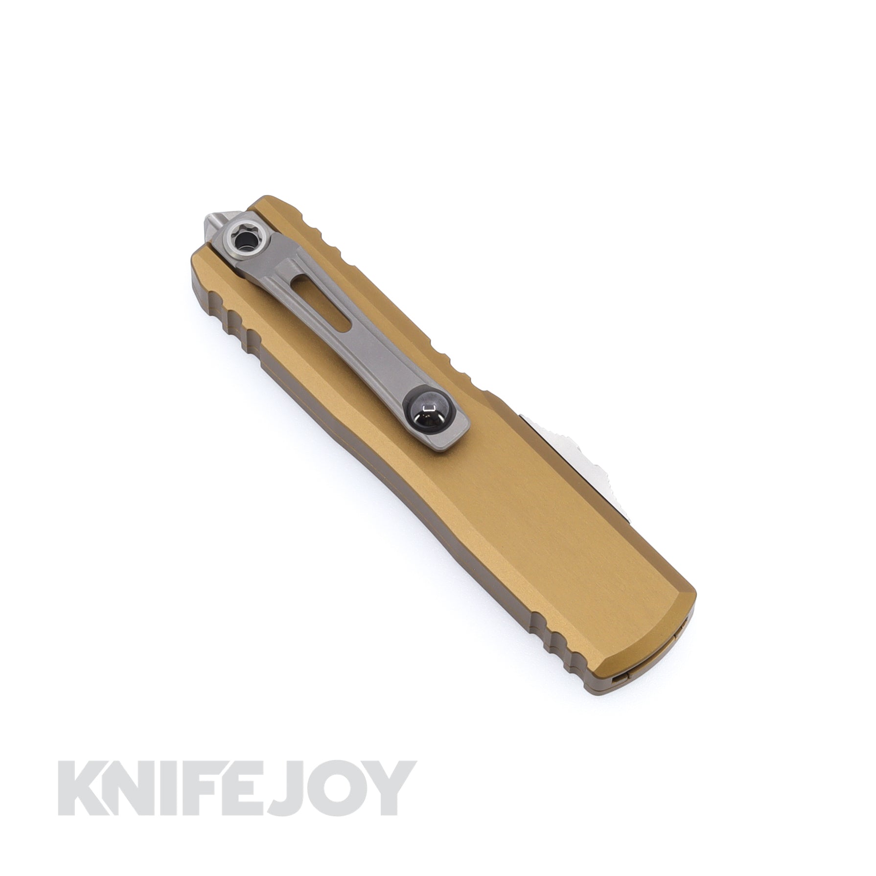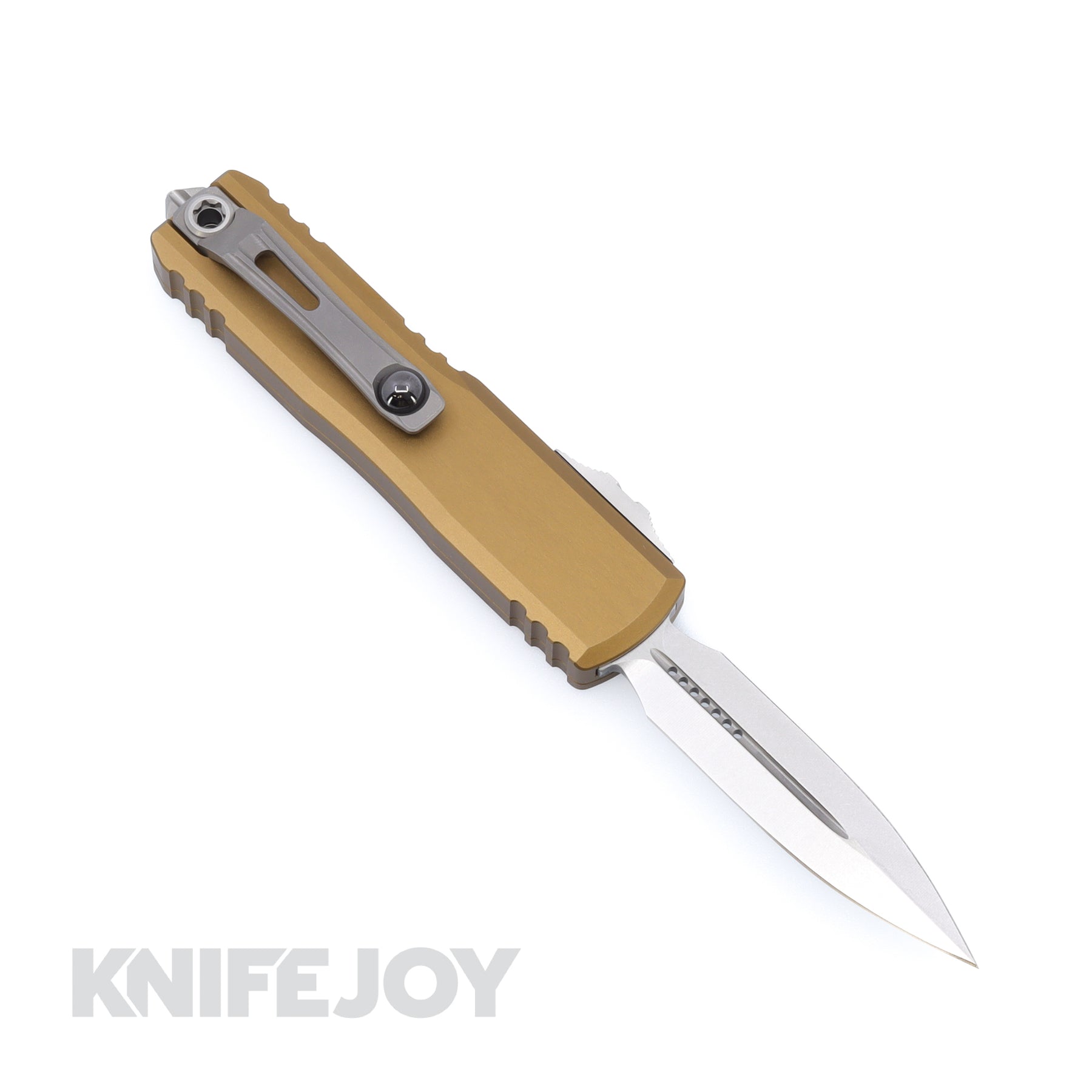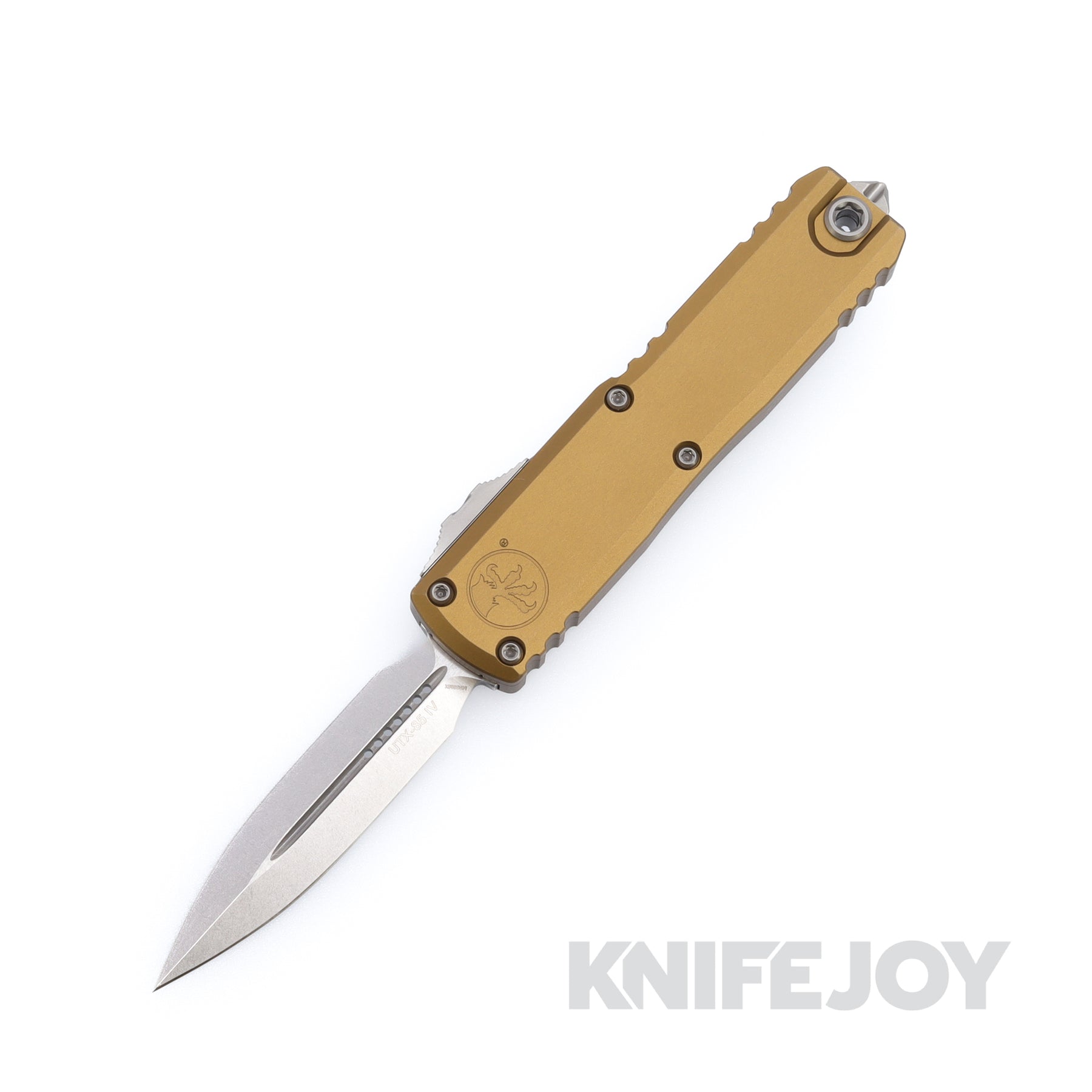 MICROTECH 12324-10TA UTX-85 GEN IV OTF Auto Double Edge Stonewash Blade with Tan Aluminum Handles