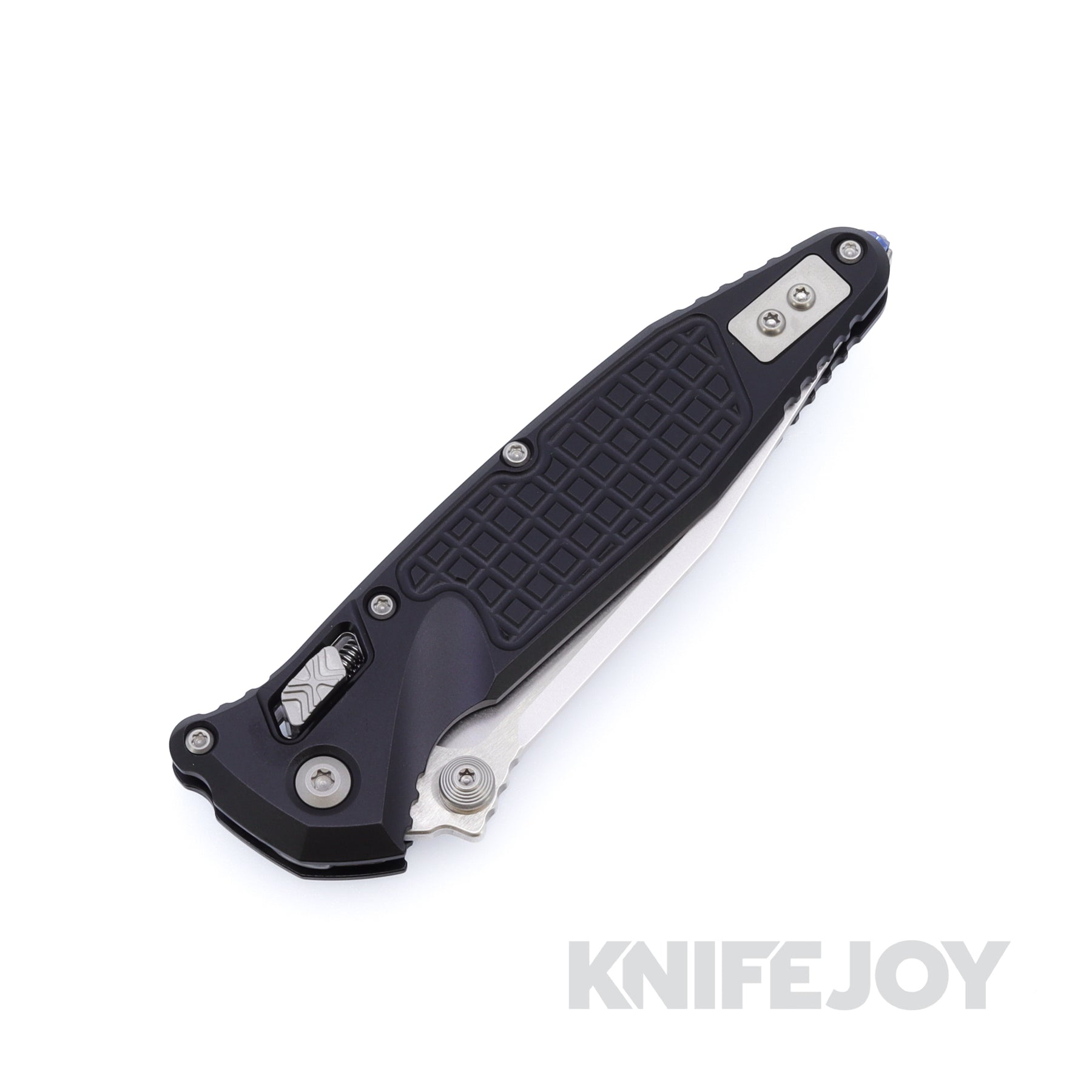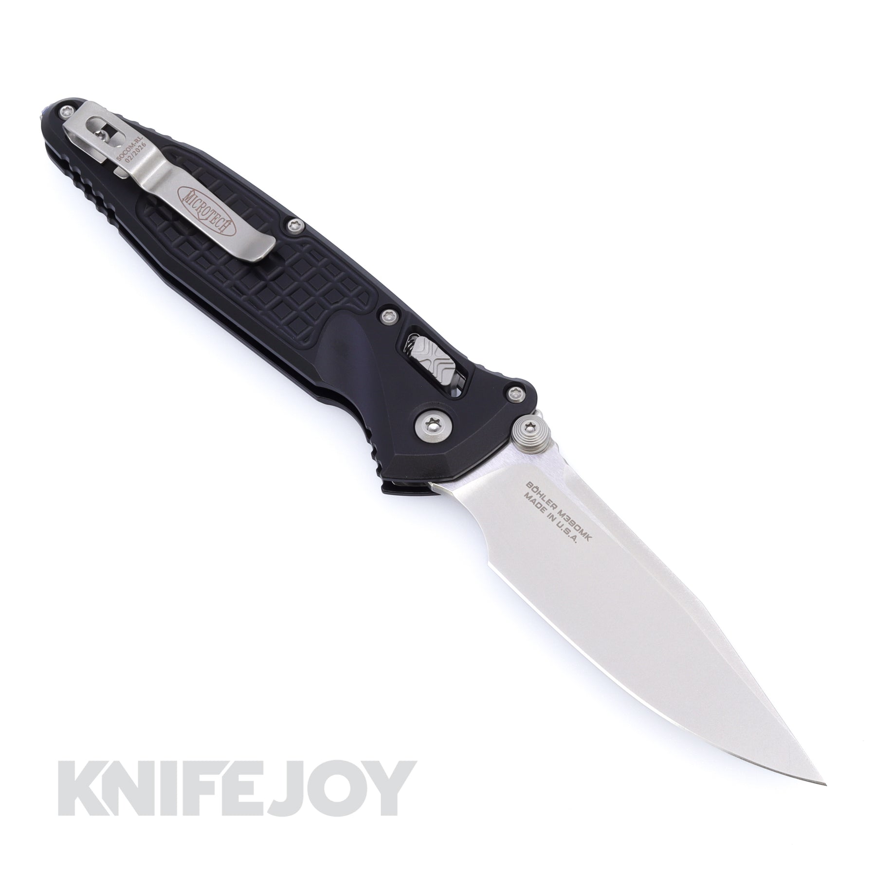 The 3.98-inch Bohler M390MK blade provides substantial cutting length with a strong, work-ready profile. Microtech’s RAM-LOK system delivers smooth deployment and secure lockup, housed in a frag-textured 6061-T6 aluminum frame built for control and durability.