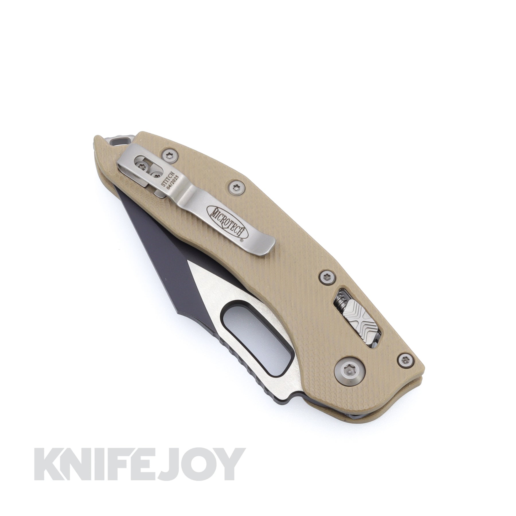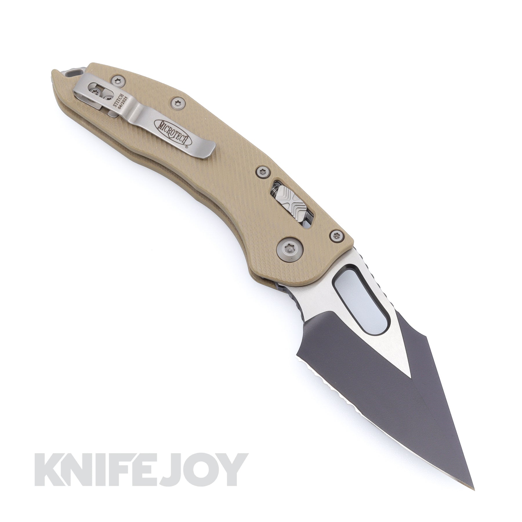 The Microtech Stitch® is a production version of the custom knife collaboration between Marfione Custom Knives® and Borka Blades. This model features a substantial choil and thumb ramp, spear point style blade and a knurled alloy handle with a black finish. Most of our Stitch® Auto knives come fitted with bead blasted hardware (unless DLC or Tactical) and a secure right hand, tip-up carry pocket clip.