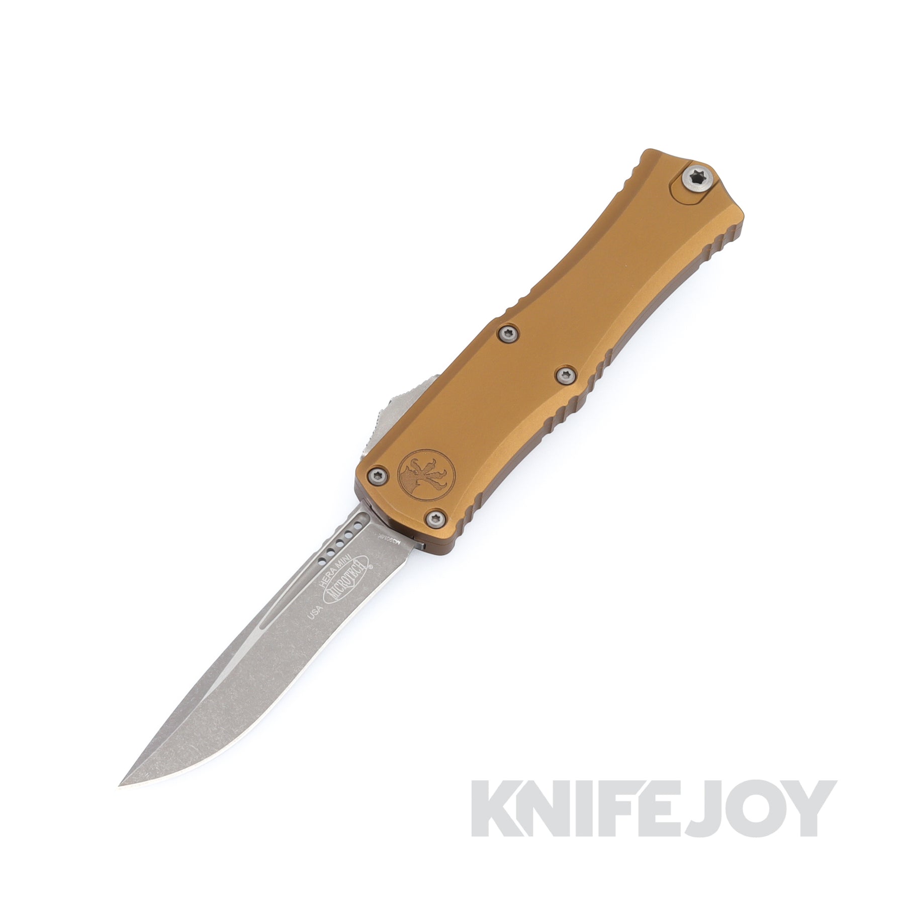 The perfect blend of utility and aesthetic, the Hera Mini features the new Gen III dual action, dagger blade and streamlined body. The handle, made of tan anodized aircraft aluminum, is accented with machined patches that allow for maximum grip.