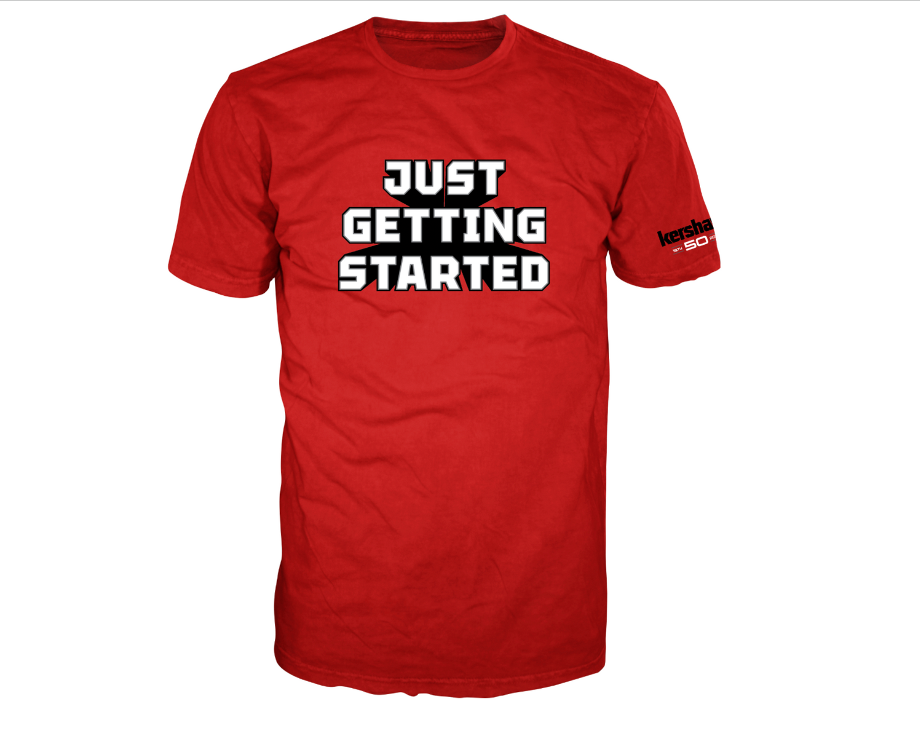 Join Kershaw's 50-year celebration with the official anniversary T-Shirt. This 50/50 blend of cotton and polyester is comfortable and durable for everyday wear. Kershaw's 50-year slogan – "Just Getting Started" – is proudly displayed on the front, while the sleeve shows off the Kershaw anniversary logo.