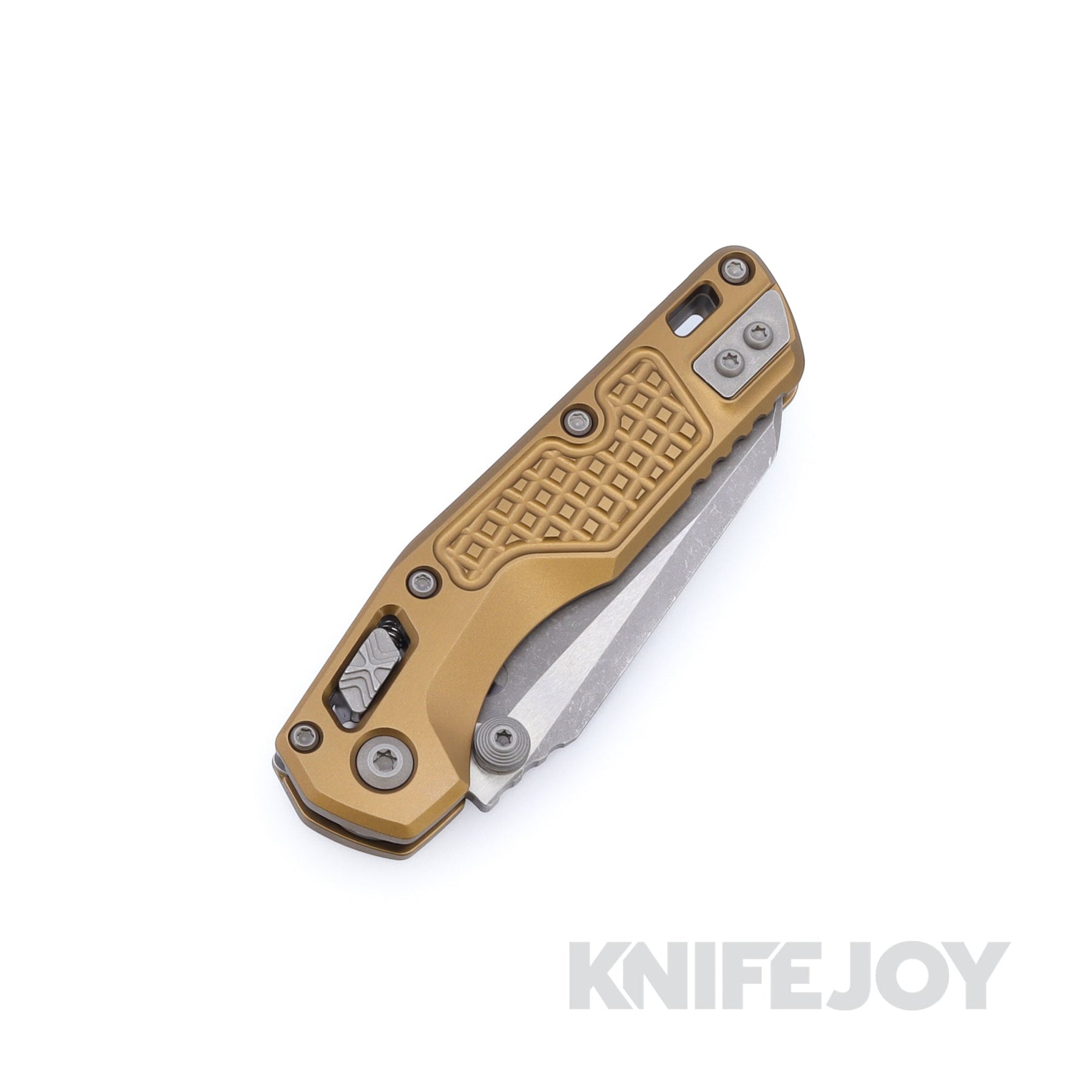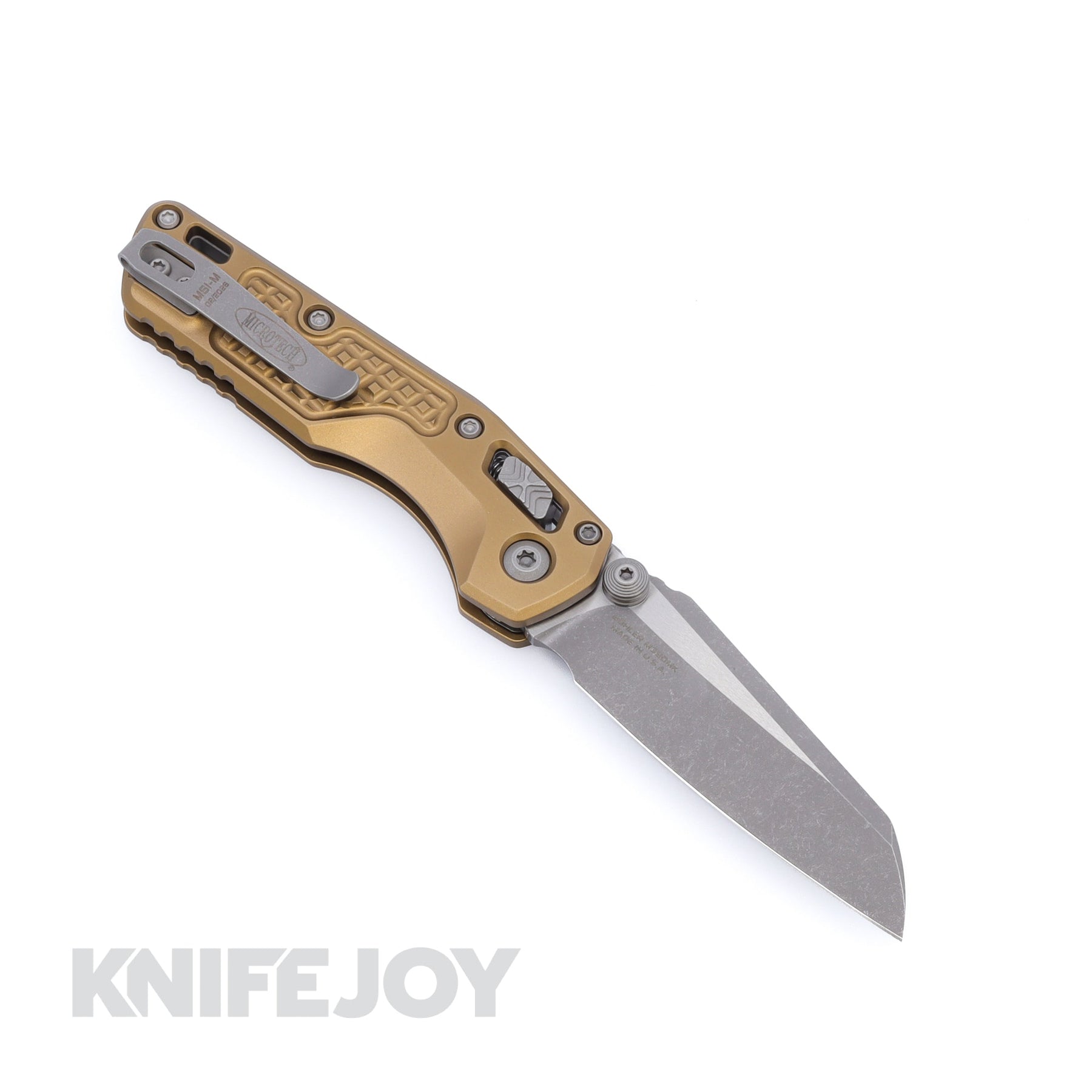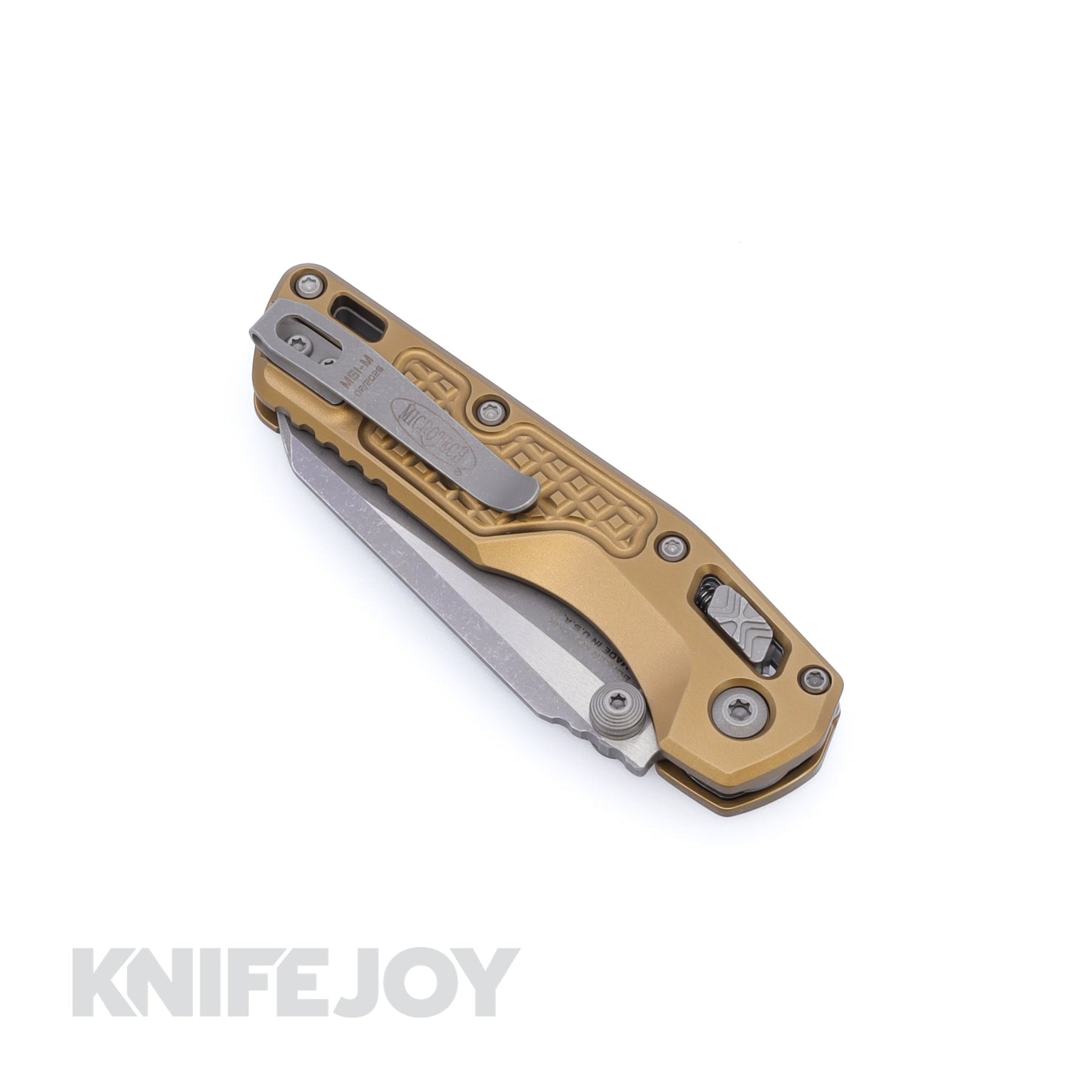 MICROTECH Standard Issue 210M-10APFRTA MSI Mini RAM-LOK Folder Single Edge Apocalyptic Blade with Tan Frag Aluminum Handles - Open Box