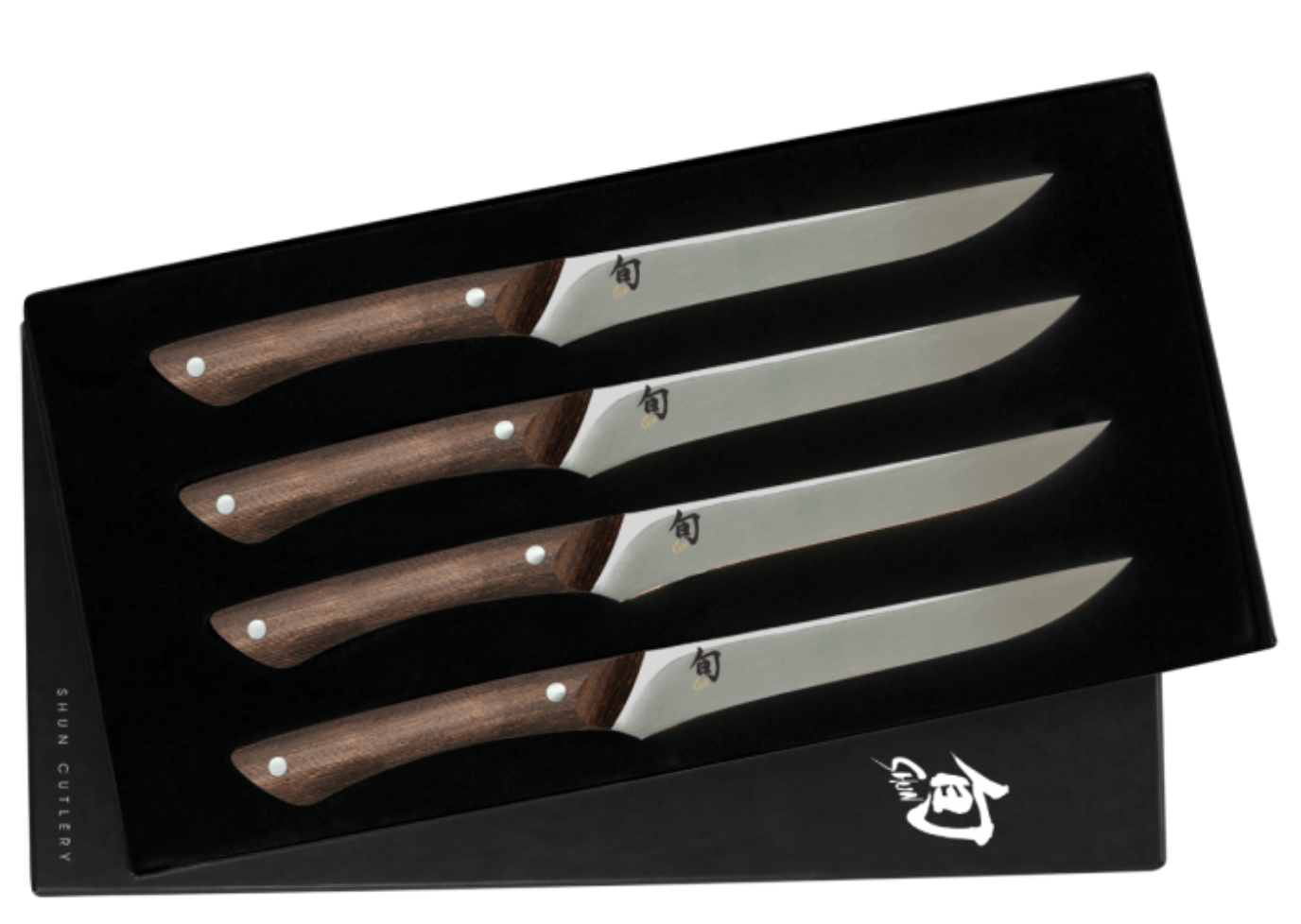 Tokyo’s renowned Shima Steakhouse serves some of the world’s finest beef. Shun named our beautiful Shima Natural Steak Knife Set in honor of this famous steakhouse—and because we believe that the right steak knife can make even the world’s finest steak taste even better. Much of the delicious flavor in steak is contained in its juices, which are held inside by the fibers of the meat. Cutting with Shima’s razor-sharp 16° edge means that far fewer meat fibers are cut with each slice, so that more of the juices and more of the flavor remain in the steak. These lightweight steak knives feature beautiful tagayasan (wenge) wood handles and offer easy, comfortable cutting control.