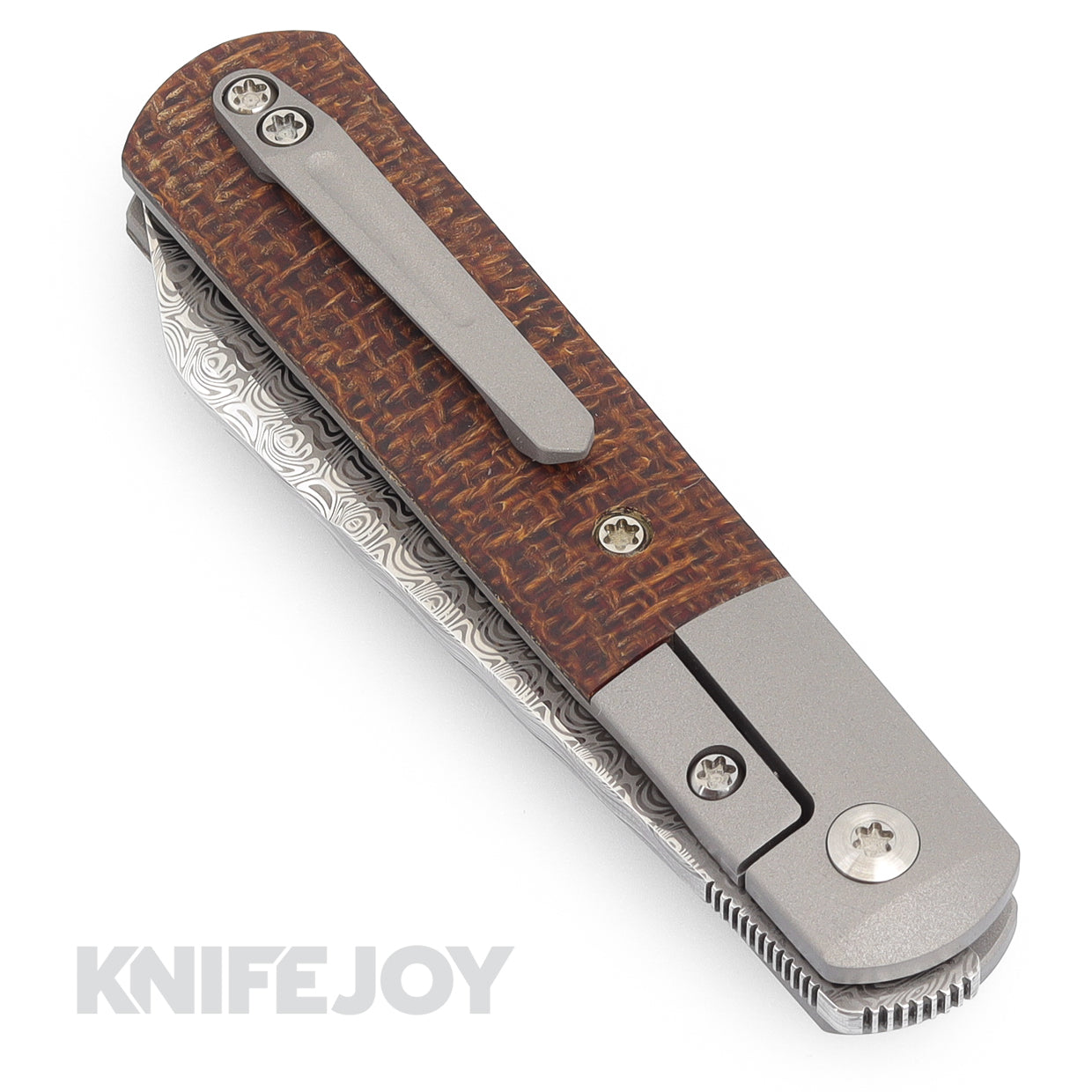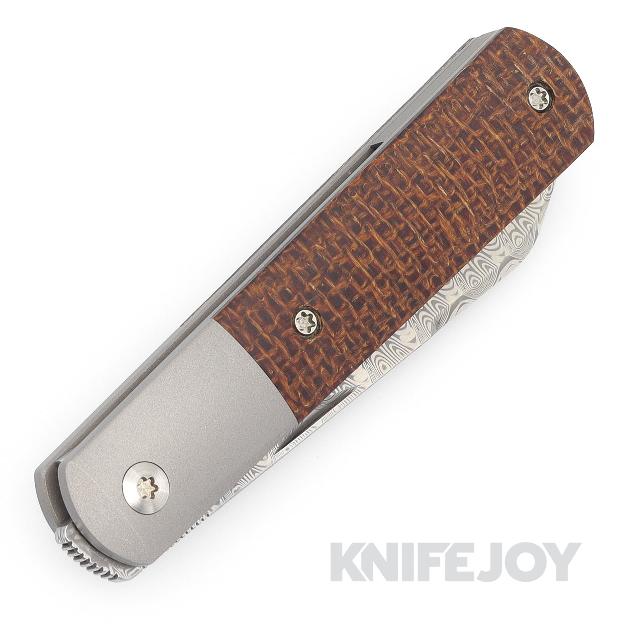 Enrique Pena X Series Front Flipper Barlow #2 Spey Blade Damasteel with Custom Burlap Micarta Handles