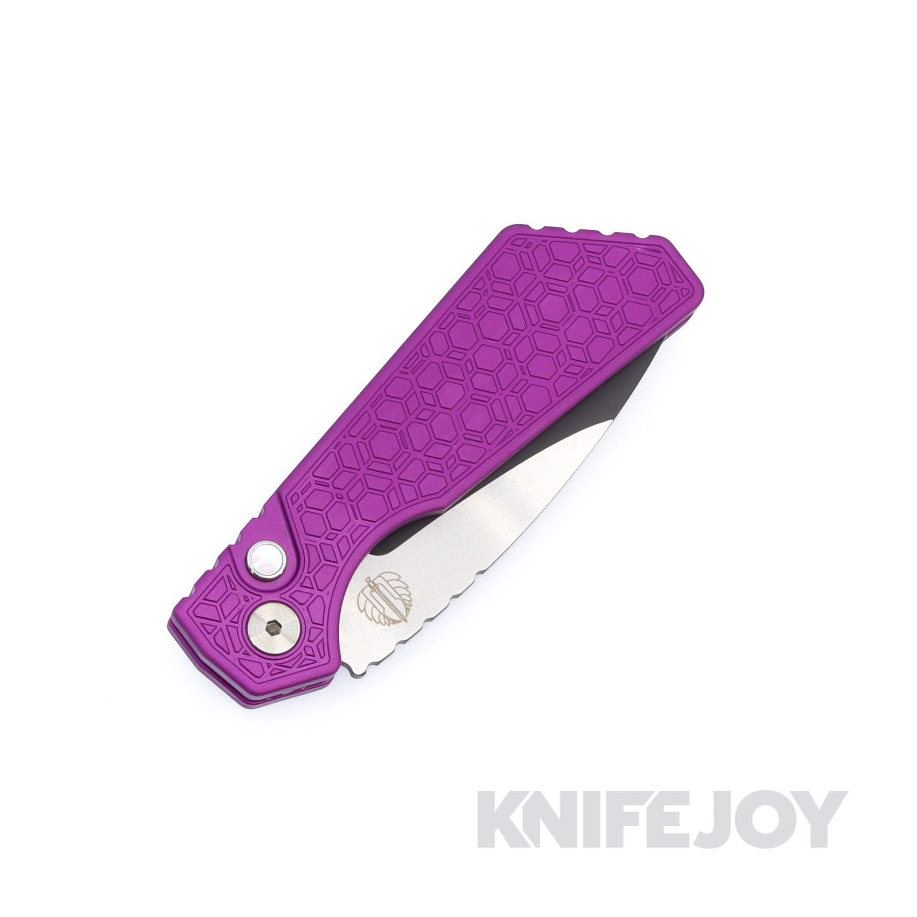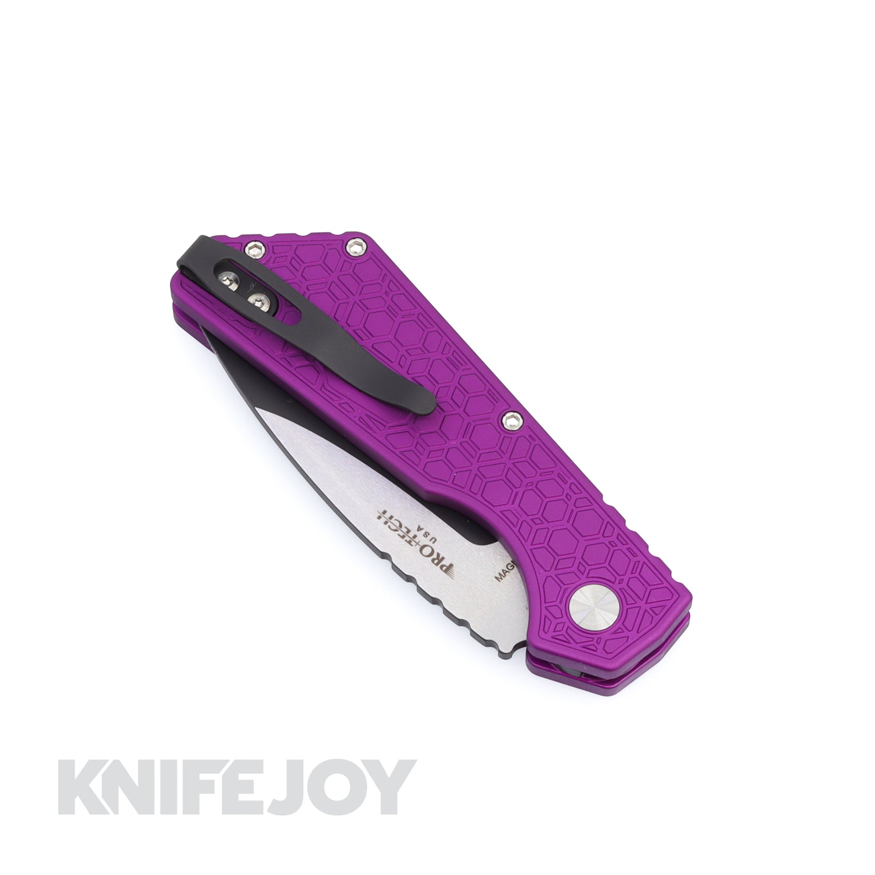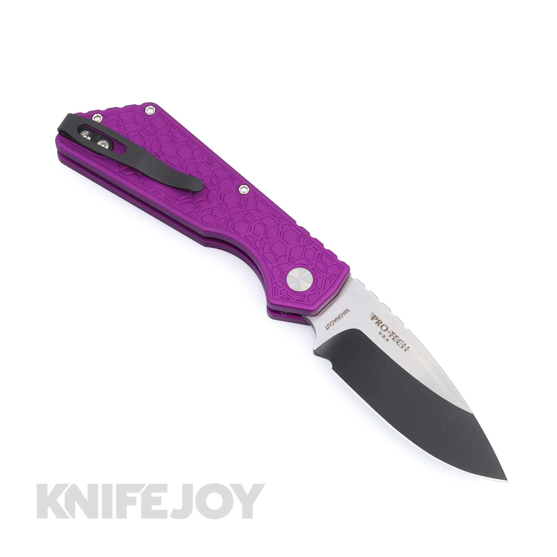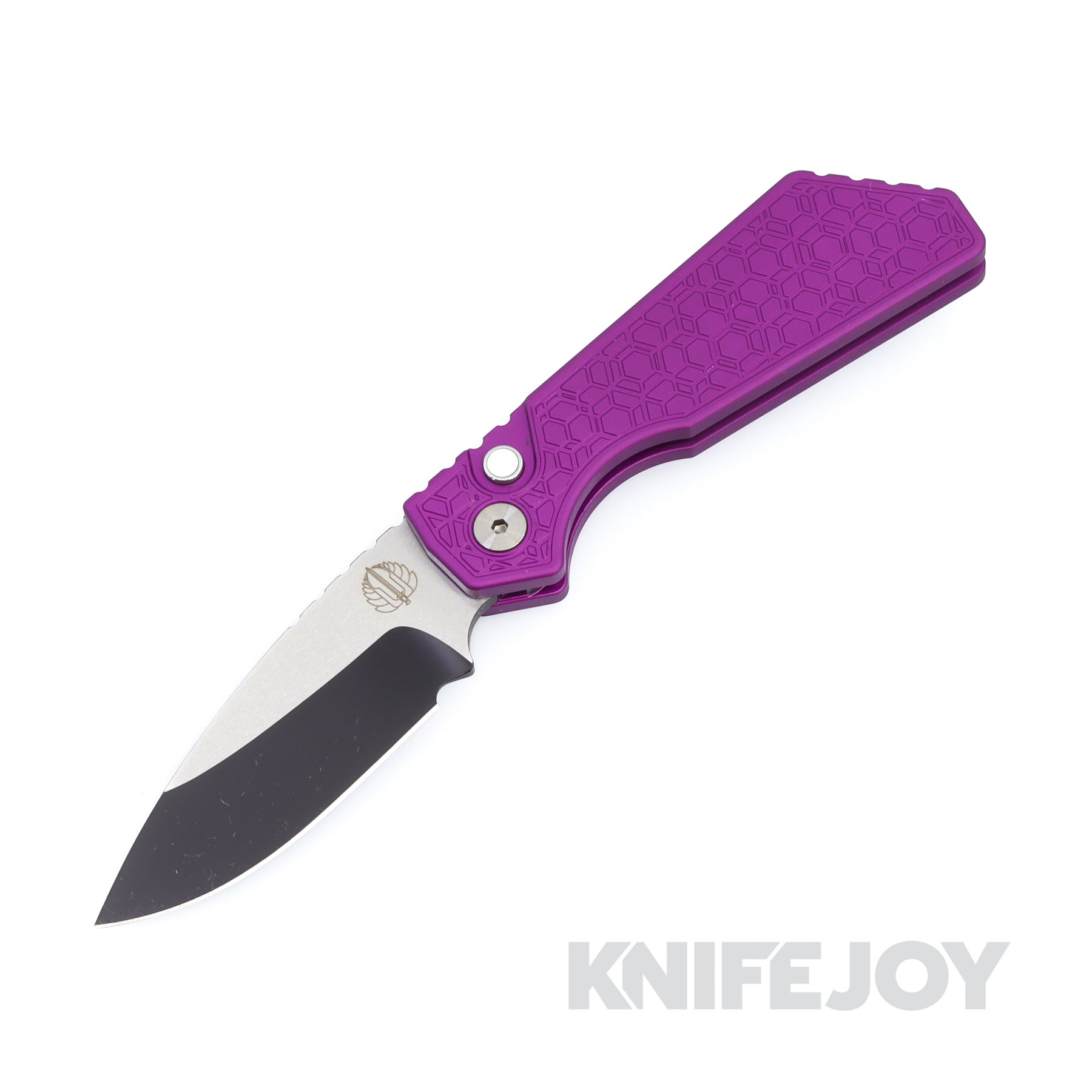 Pro-tech Knives Pro-Strider PT+ Custom Auto offers the utmost in reliability and performance. Constructed from 17-4 stainless steel with hand satin and blasted chamfers this knife is finished in satin hardware and a black lip pearl button to complete the look.