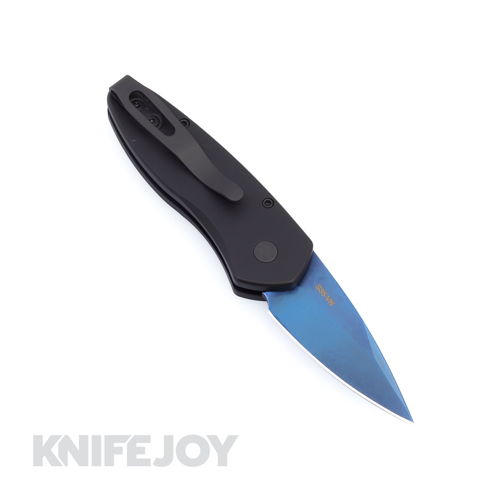 One of our latest additions to the Pro-Tech under-blade automatic knife collection. The Sprint is the thinnest, lightest, and pretty much most awesome small auto knife around. The Sprint is built with the latest S35-VN powdered metal technology from Crucible and this fantastic little auto folder only weighs 1.6 OZ (aluminum handle version). Available in a wide range of configurations, the Sprint will be one of your favorite knives the moment you hold it! Textured black handle, Sapphire Blue blade, plain edge Specifications: Overall Length: 5.00" Blade Length: 1.95" Blade Thickness: 0.10" Blade Material: CPM-S35VN, Blade Edge, Style: Plain Edge, Spear Point Closed Length: 3.05" Handle Thickness: 0.38" Handle Material: 6061-T6 Aluminum, Textured Black Pocket Clip: Tip-Up Weight: 1.65oz