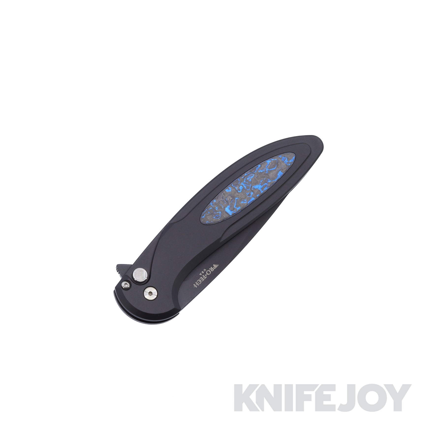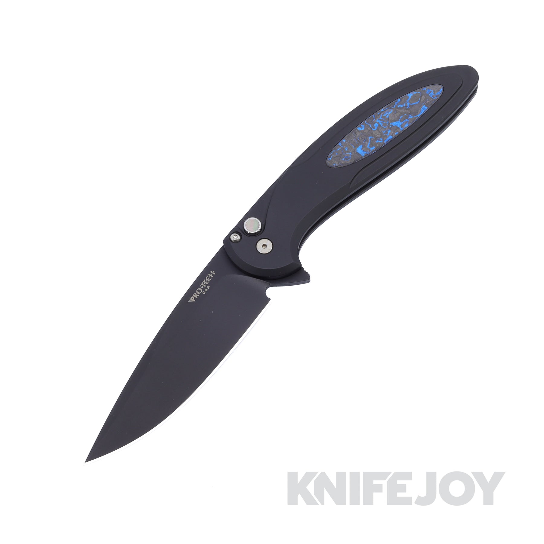 Pro-Tech Knives CF2103-LTD TC Blue Cambria 2 Flipper with DLC Magnacut Blade and Black Handle with TechnoCarbo Blue Inlay / Black Lip Pearl Button / Satin Hardware