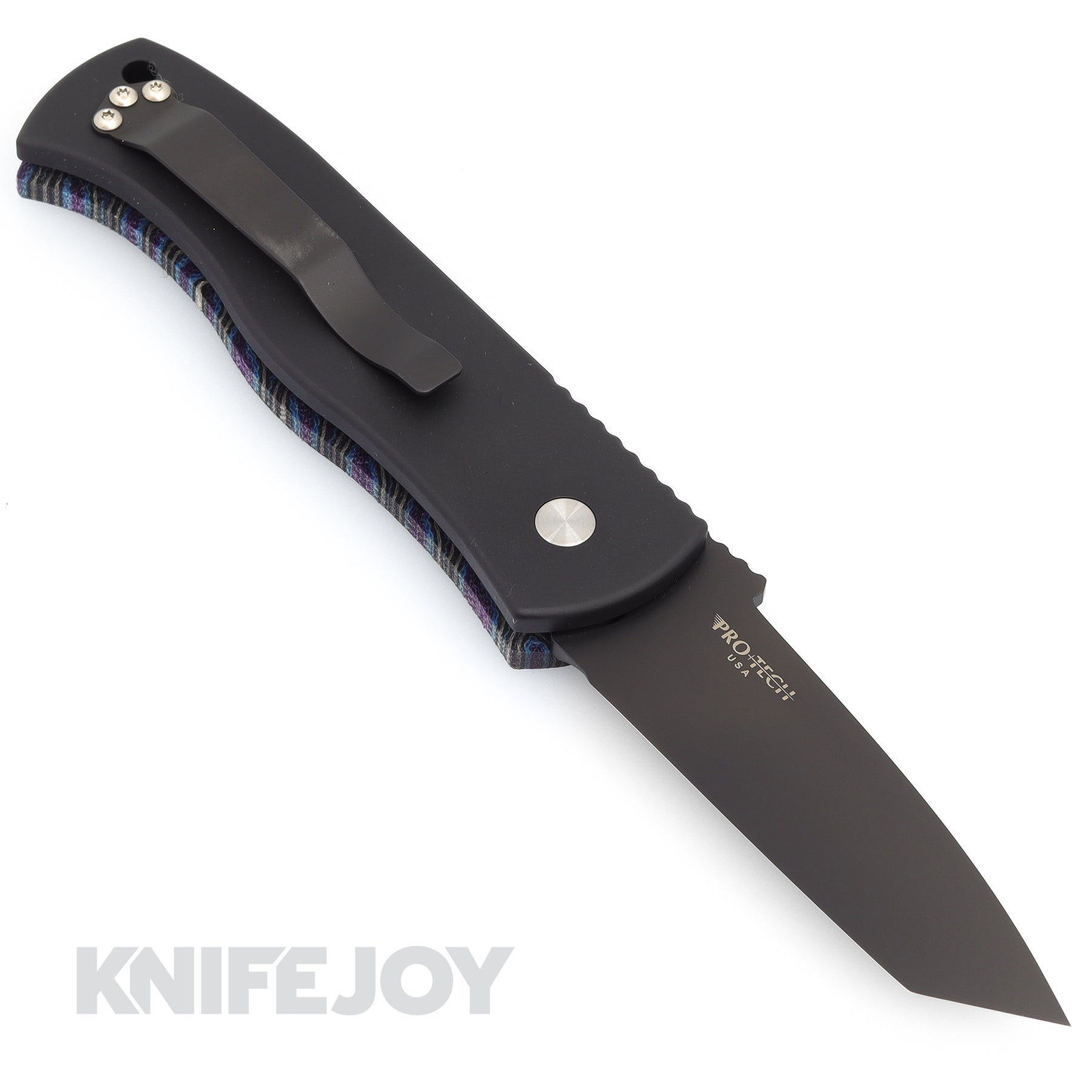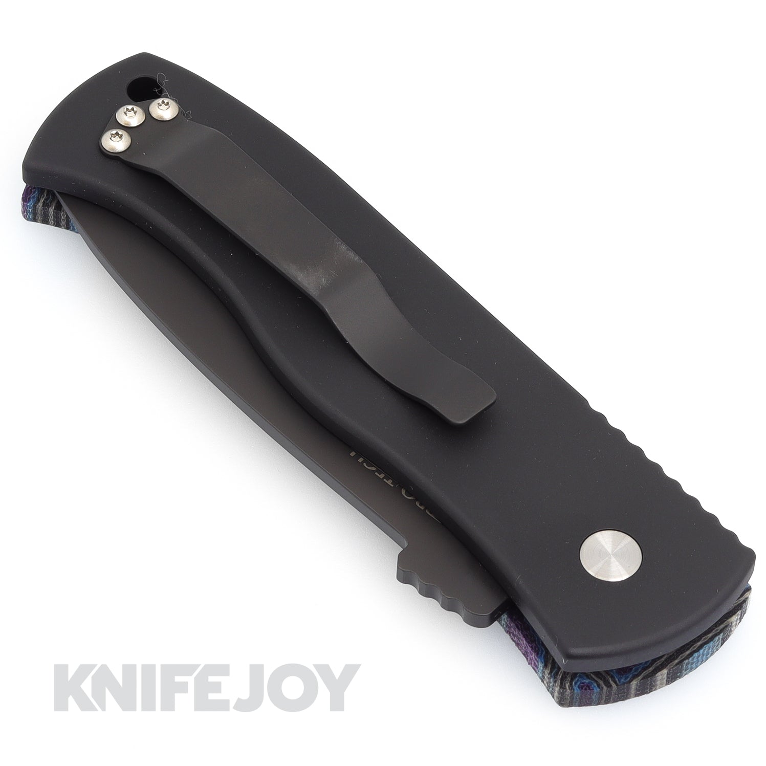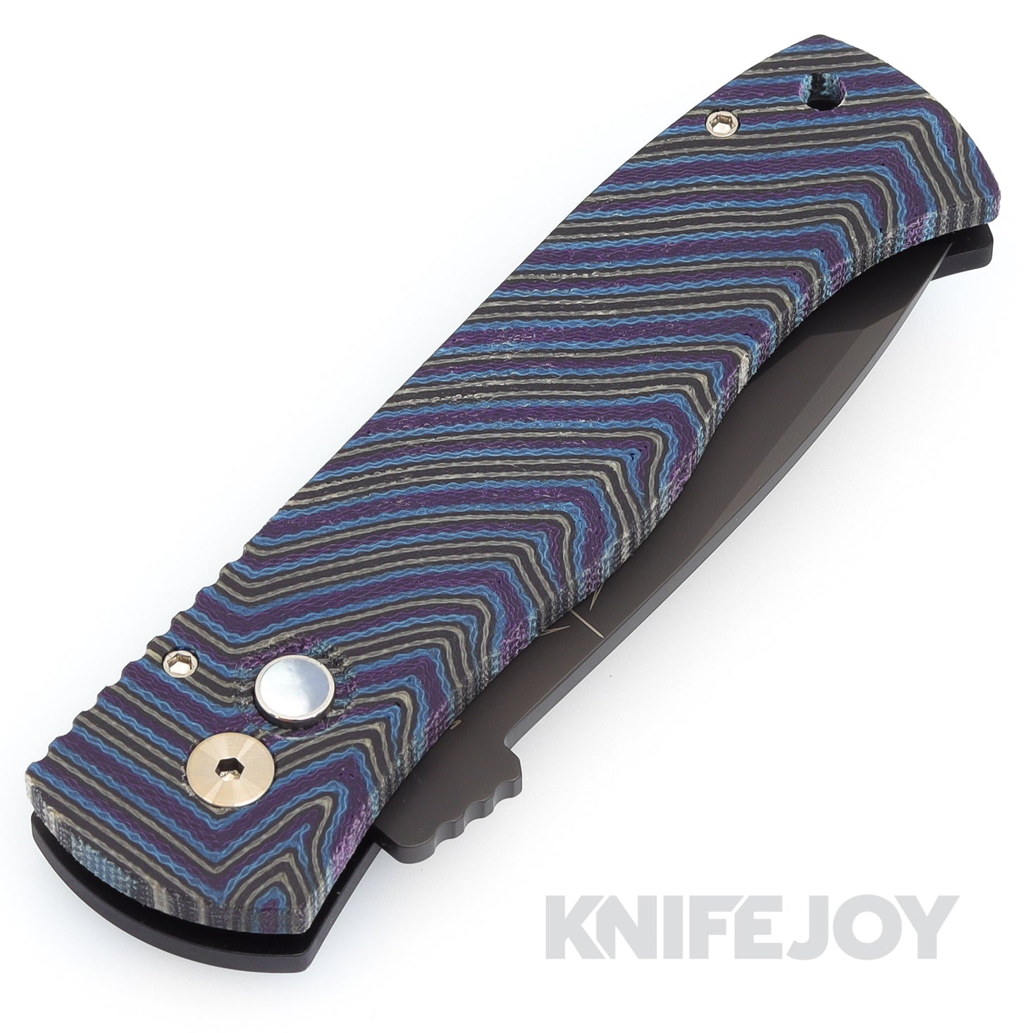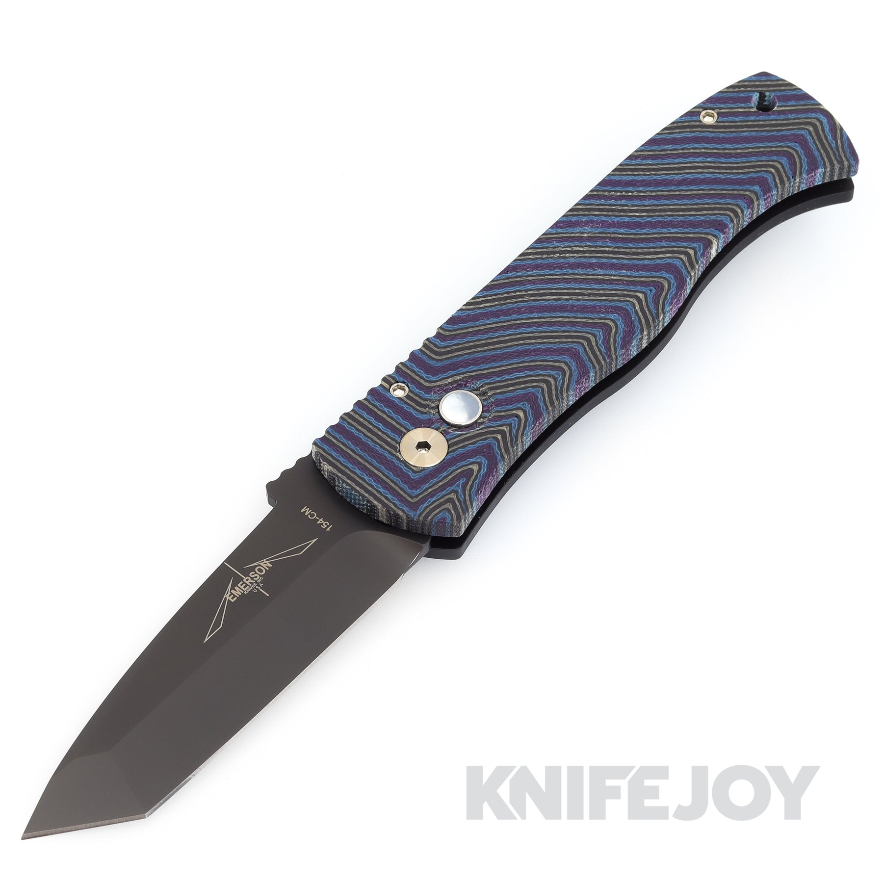 Pro-tech Knives PT-EMERSONCUSTOMG Emerson Auto DLC Blade with Striped MICARTA Handle