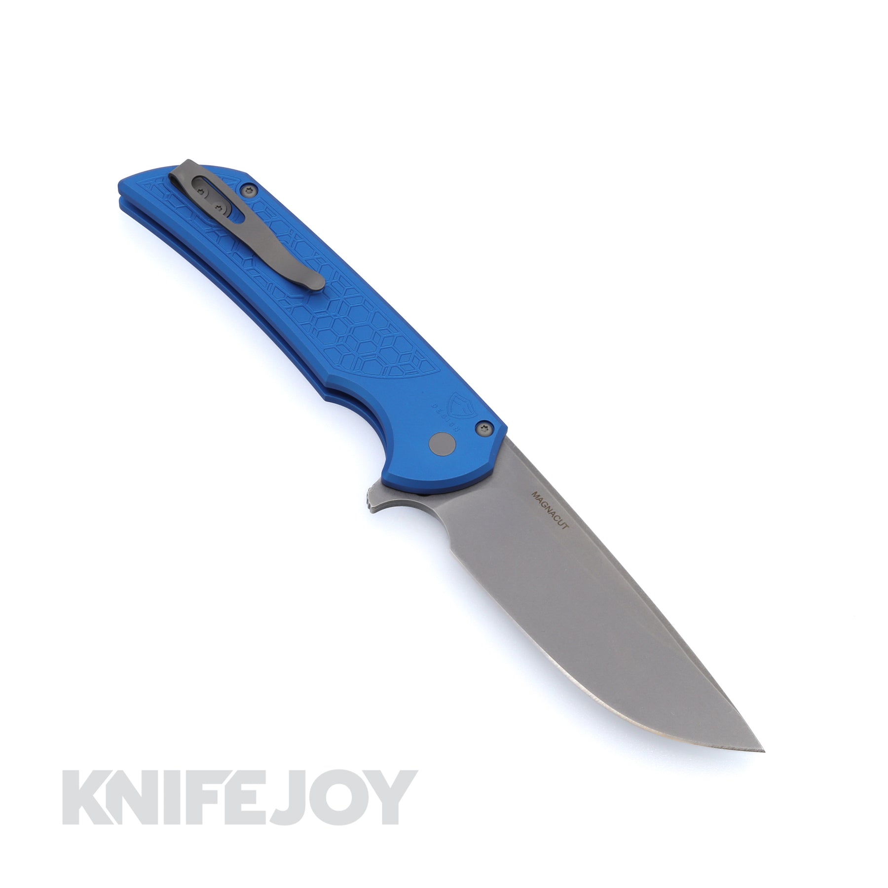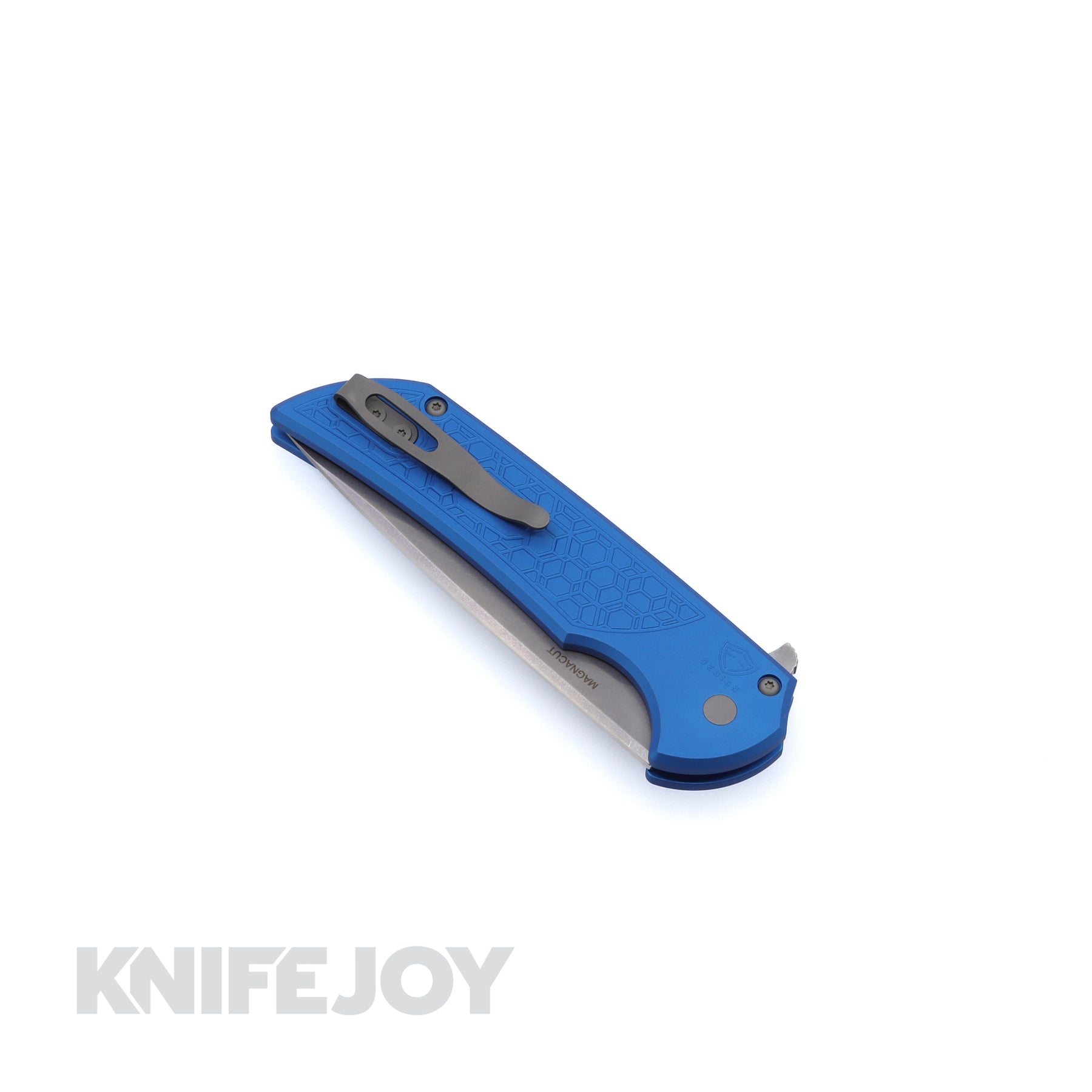 The ProTech Mordax blends Ferrum Forge’s signature design with ProTech’s precision manufacturing. Featuring a sharp CPM Magnacut drop point blade, it is a premium EDC that balances tactical utility with everyday practicality. This version sports blue aluminum scales with a milled "Gridlock" pattern and a stonewashed finish.
