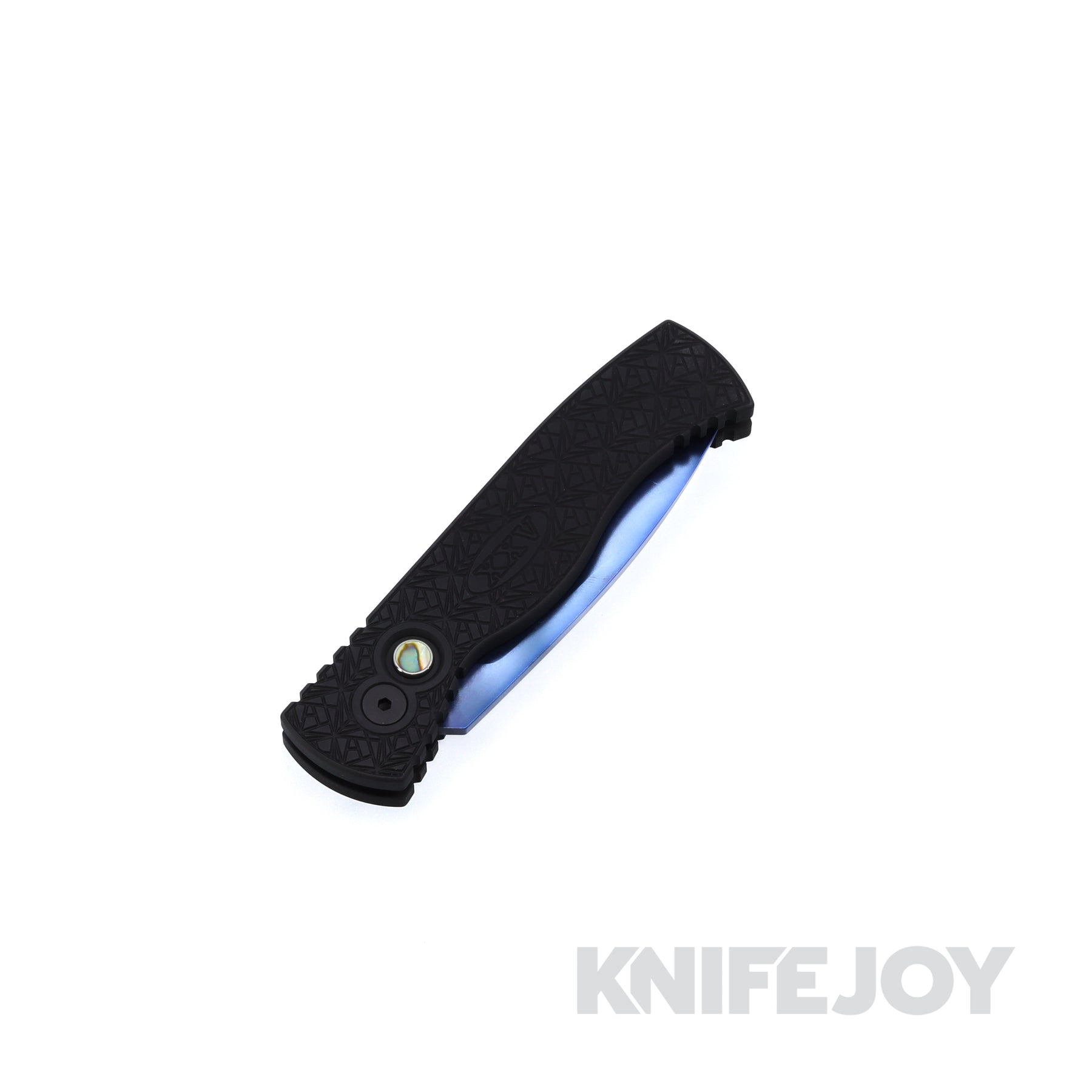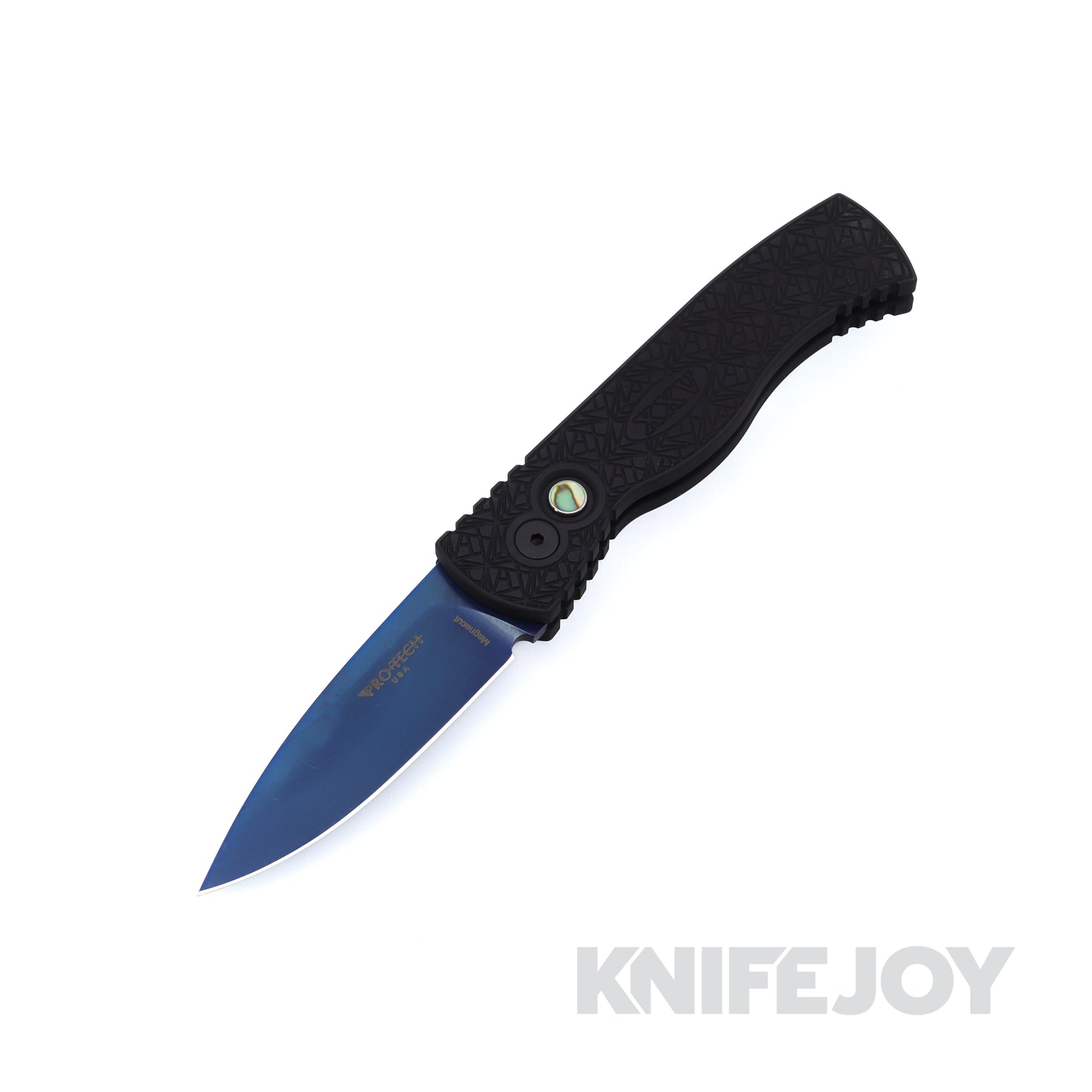 Pro-tech Knives PTT206-SB NEXUS Tactical Response 2 Auto Folder Plain Edge Sapphire Blue Magnacut Blade with Black NEXUS "Since 1999" Textured Black Aluminum Handle / Abalone Button / Black Hardware