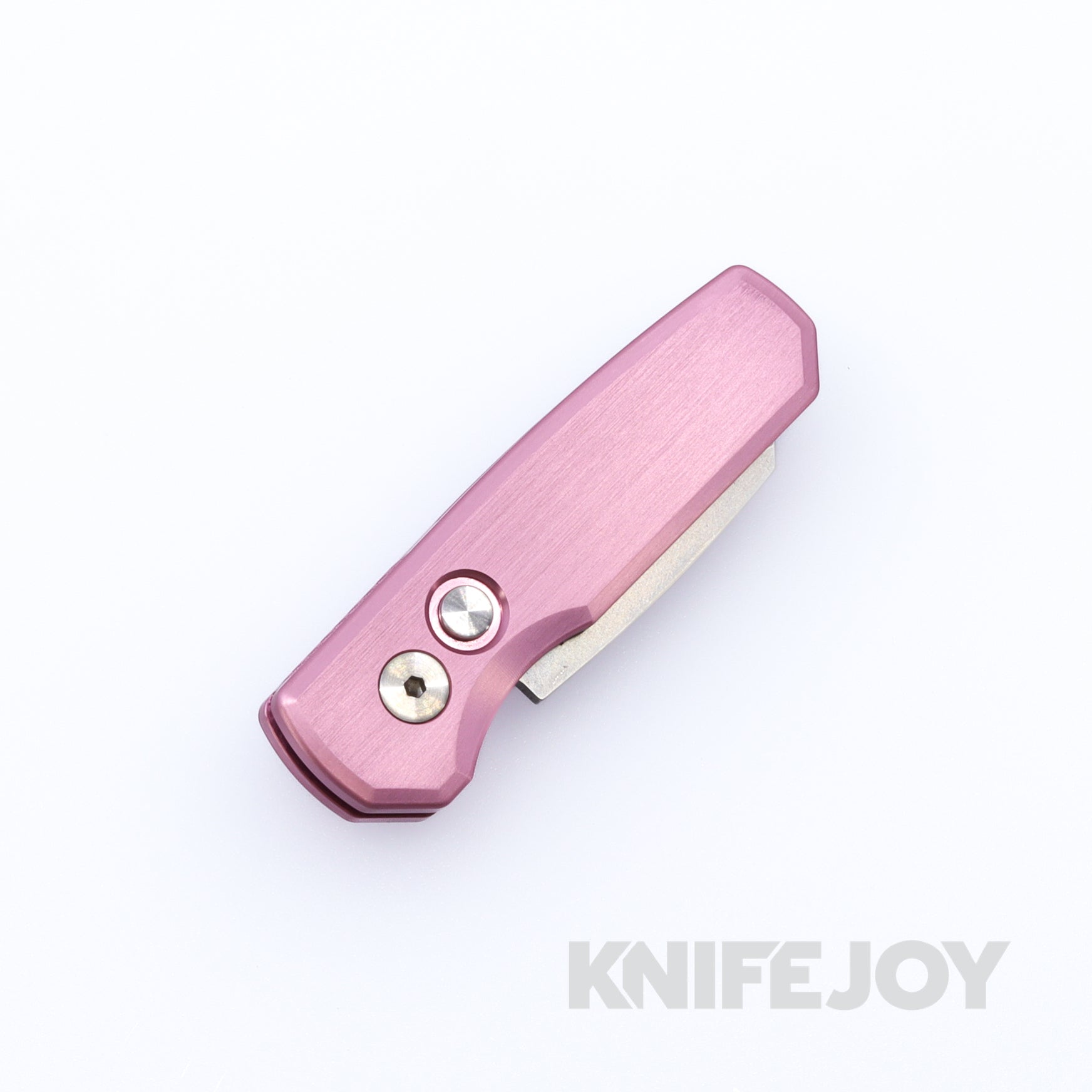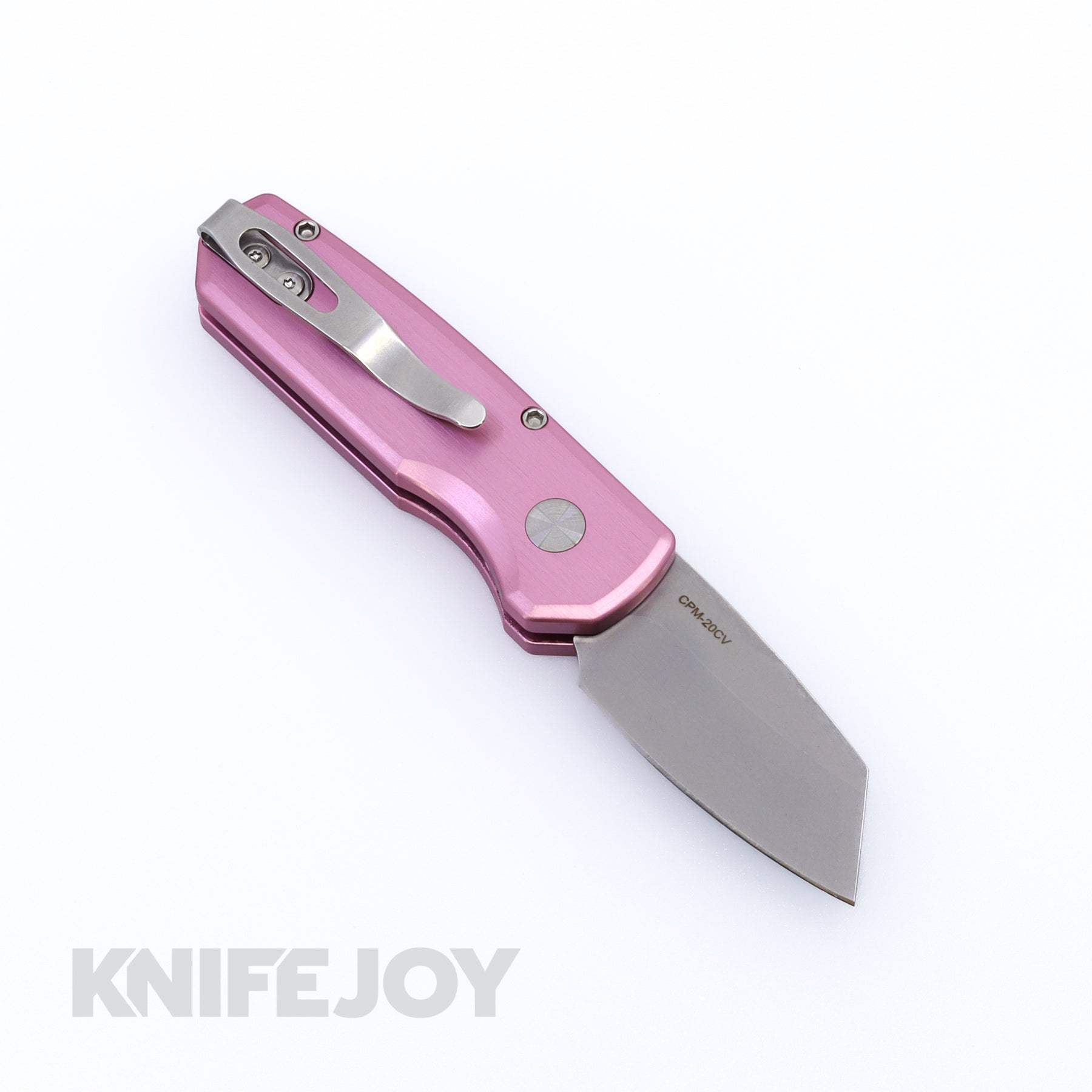 Pro-Tech Knives R5201-PINK Runt 5 Auto Stonewash 20CV Reverse Tanto Blade with Satin Pink Handle