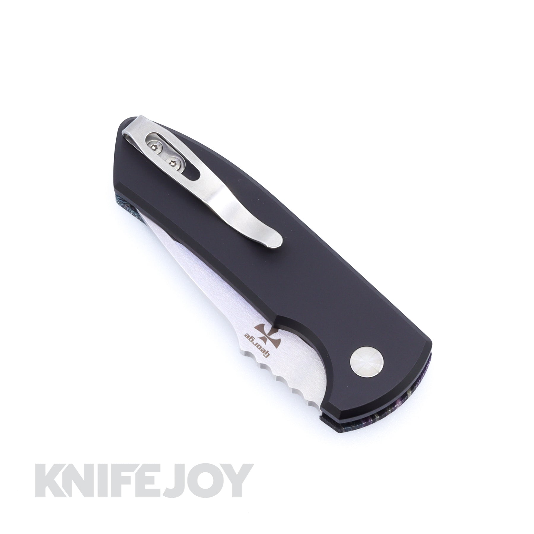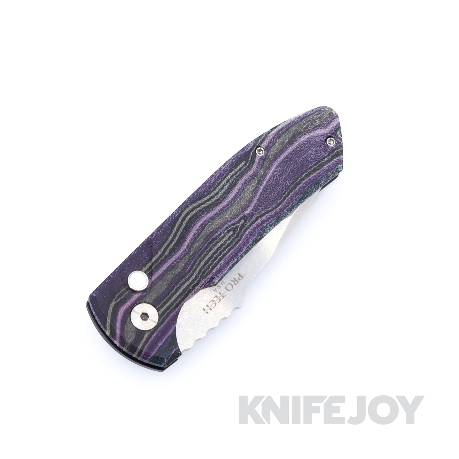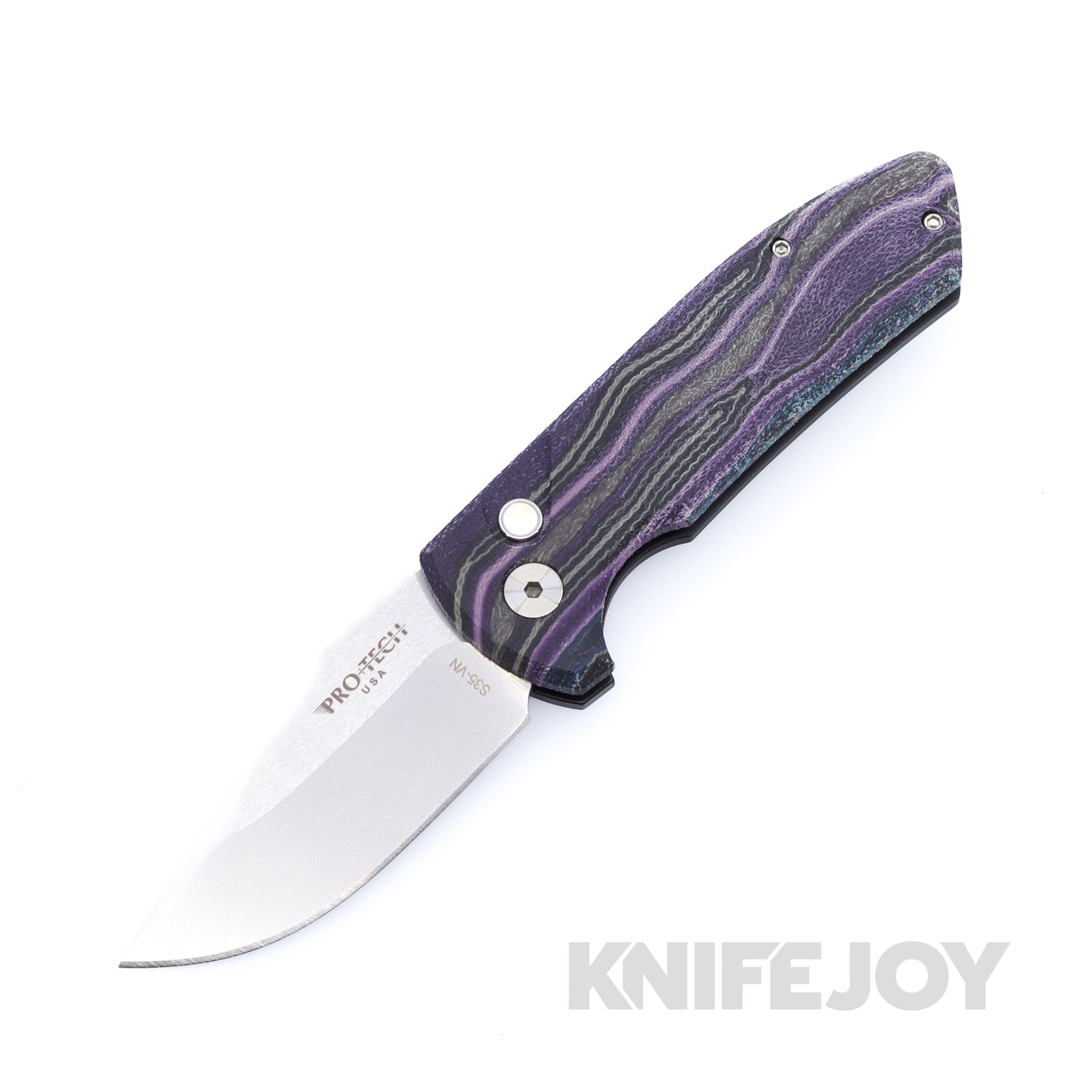 SBR with Unique purple wave Micarta handles, thick black aluminum back and deep carry clip.