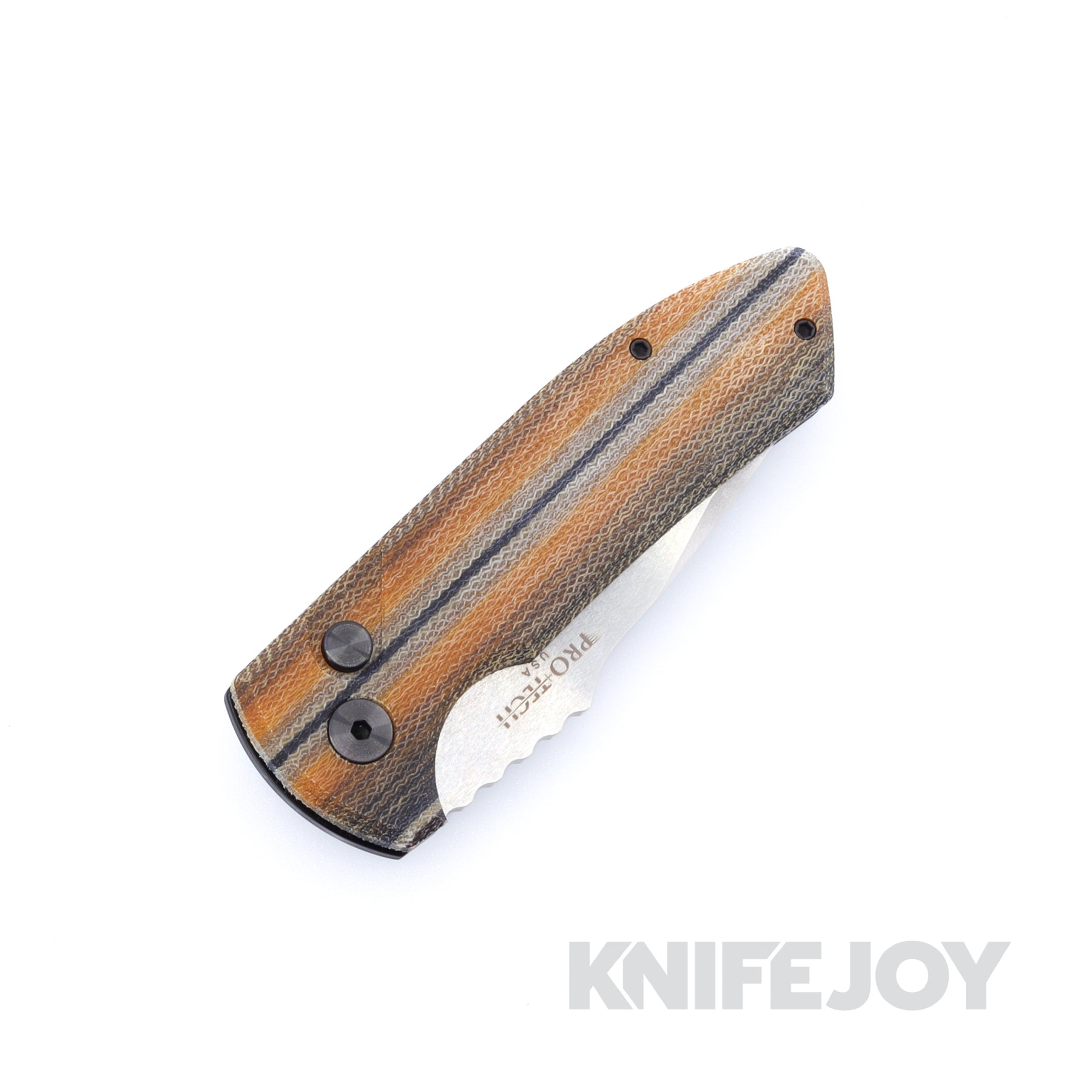 SBR with Unique striped Micarta handles, thick black aluminum back and deep carry clip.