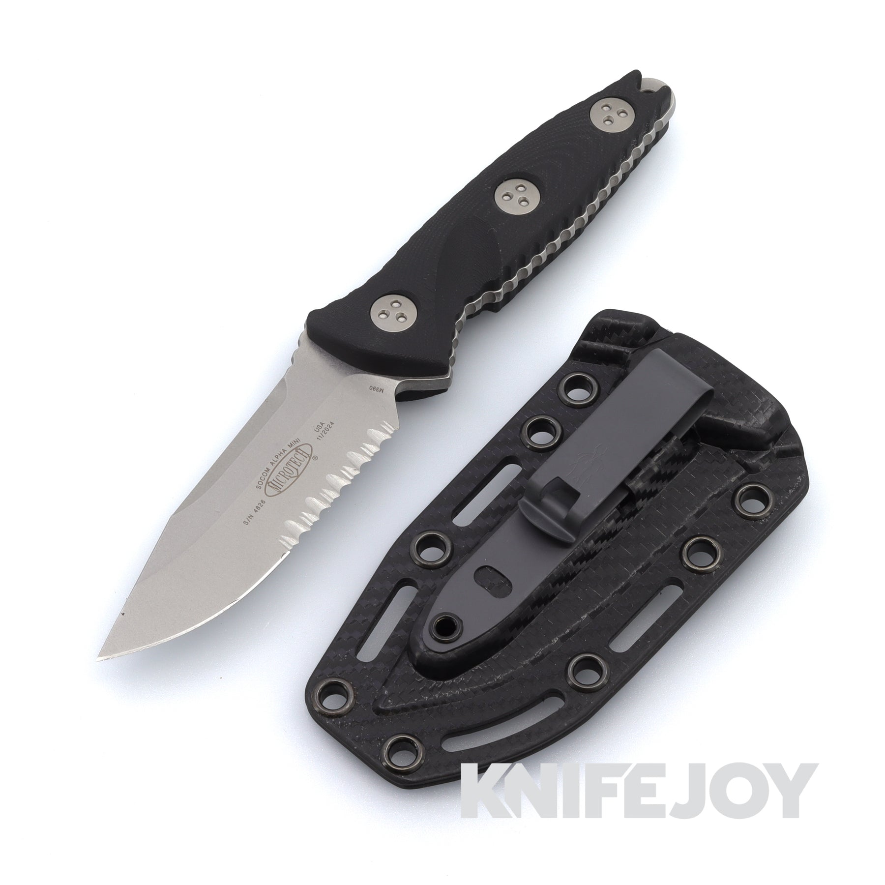 Adding to our SOCOM lineup, the SOCOM Alpha® Mini is similar in design to the folding SOCOM Elite®. The SOCOM Alpha® Mini is a full-tang scaled down version of the popular SOCOM Alpha®. With G-10 handles for improved grip capabilities, 17-4 PH stainless steel hardware, and a custom Concealex or KYDEX sheath, this molle-compatible knife is perfect for everyday carry.