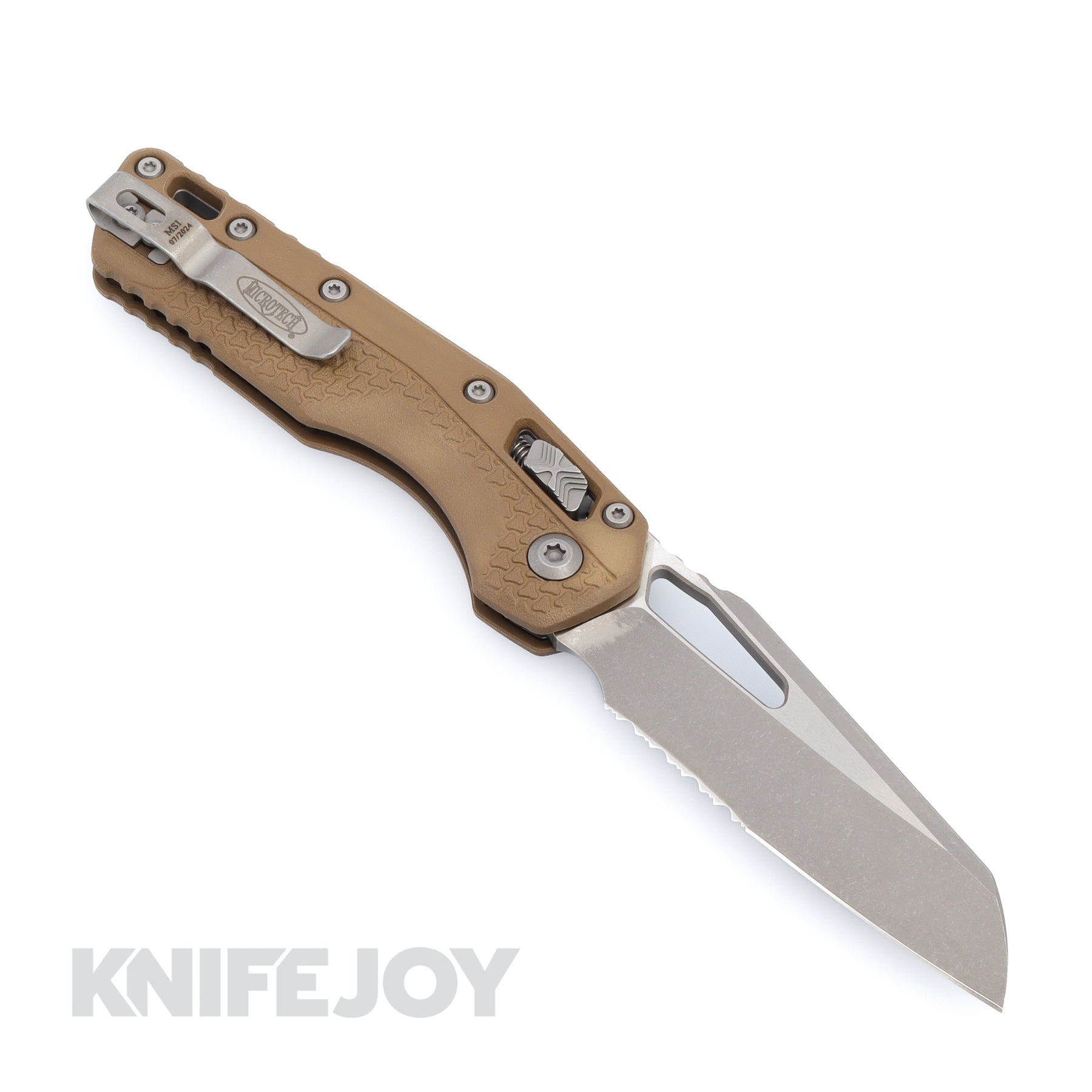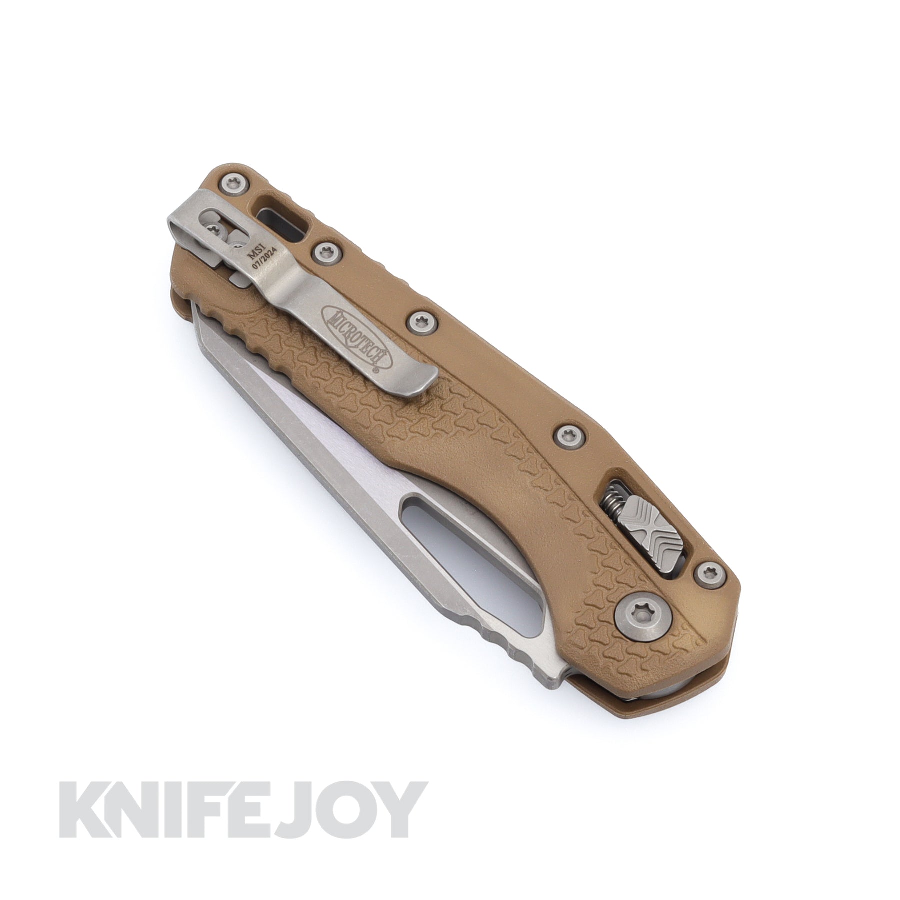 The latest folding pocket knife from Microtech! The MSI, or Microtech Standard Issue. Designed for heavy-duty use, this piece combines utility and style. The blade is made of M390MK Steel, which was produced especially for Microtech, and the handle features a RAM-LOK Bar Lock and our Iconic X Button on both sides. The Dark Earth Polymer handle contains hardened steel liner plates, which gives the knife its rigidity. Complete with a titanium backspacer and reversible pocket clip for left-hand carry.