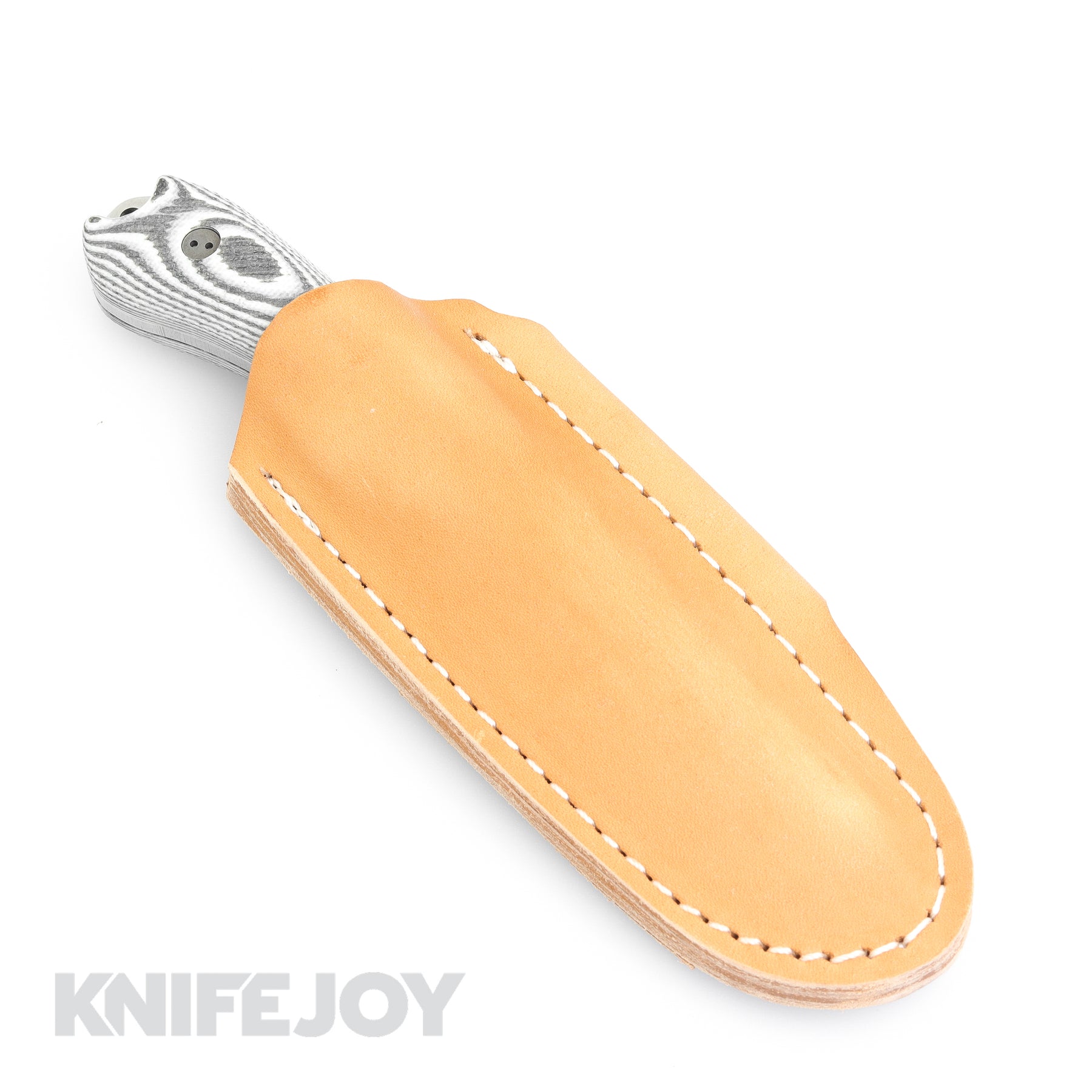 The knife comes standard with a horizontal leather sheath. "Oiled" Brown sheath for the Stonewash and Nimbus Finish blades.