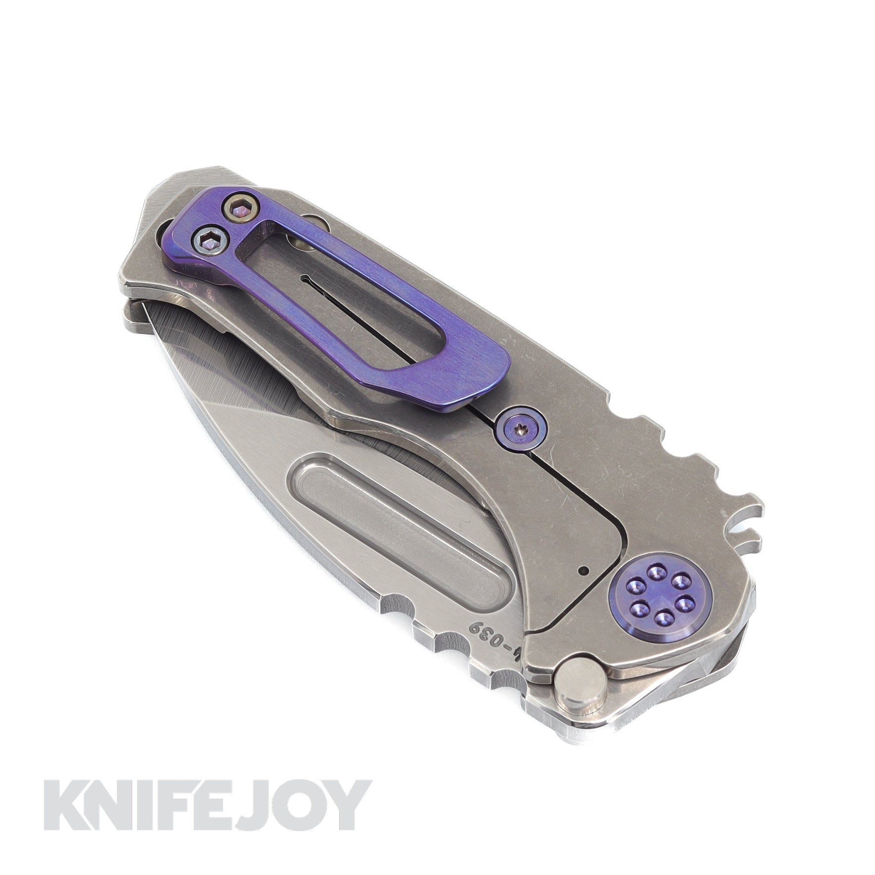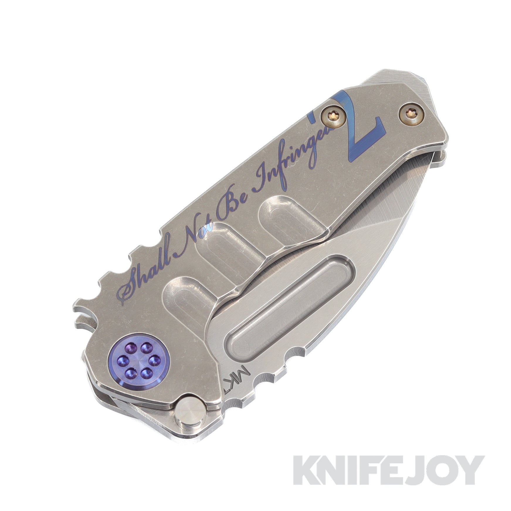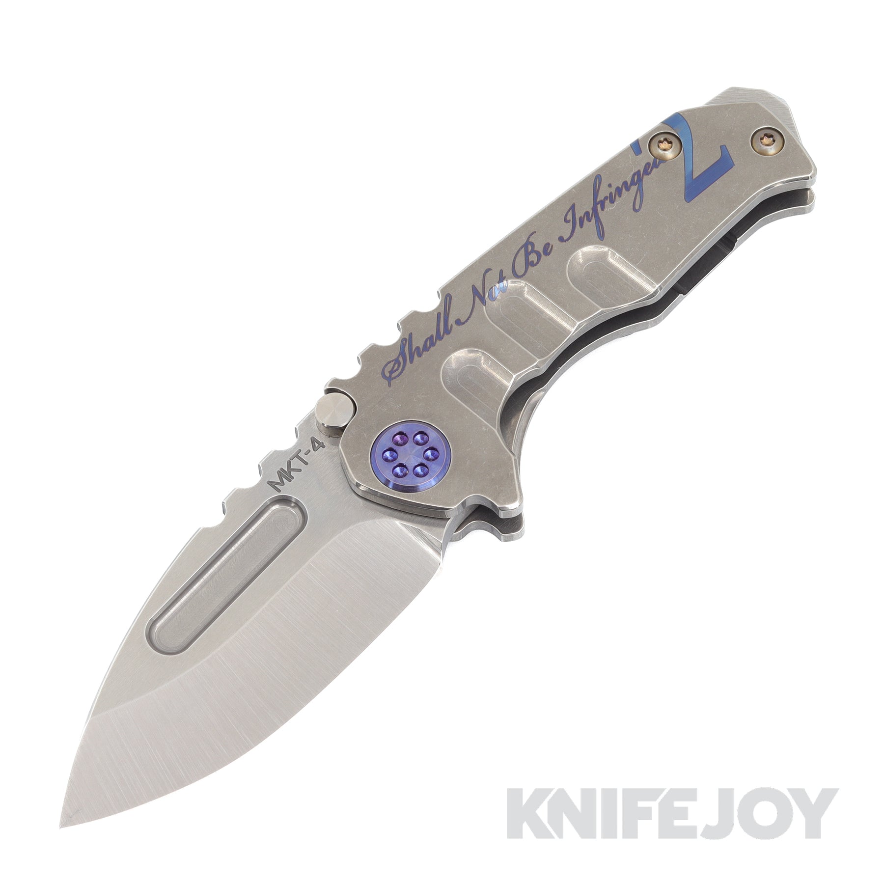 Medford Knives Micro Praetorian "T" S45VN Tumbled Drop Point Blade with Tumbled 2ND Amendment Handles/ Blue Hardware