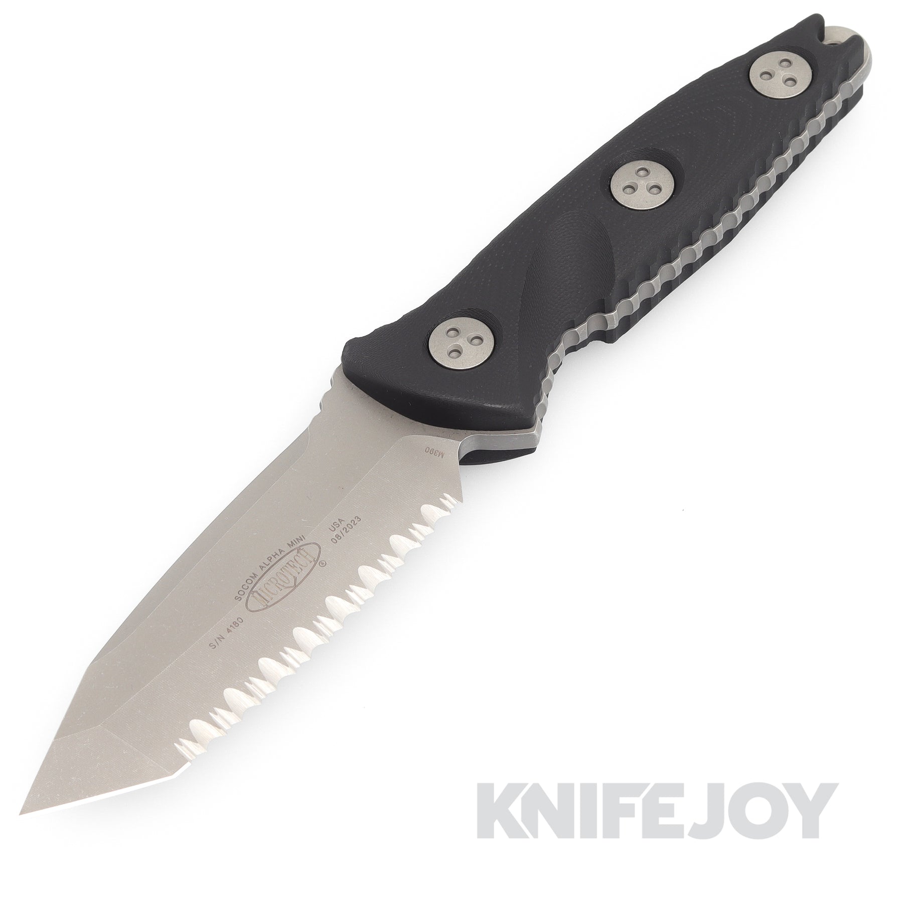 Adding to our SOCOM lineup, the SOCOM Alpha® Mini is similar in design to the folding SOCOM Elite®. The SOCOM Alpha® Mini is a full-tang scaled down version of the popular SOCOM Alpha®. With G-10 handles for improved grip capabilities, 17-4 PH stainless steel hardware, and a custom Concealex or KYDEX sheath, this molle-compatible knife is perfect for everyday carry.
