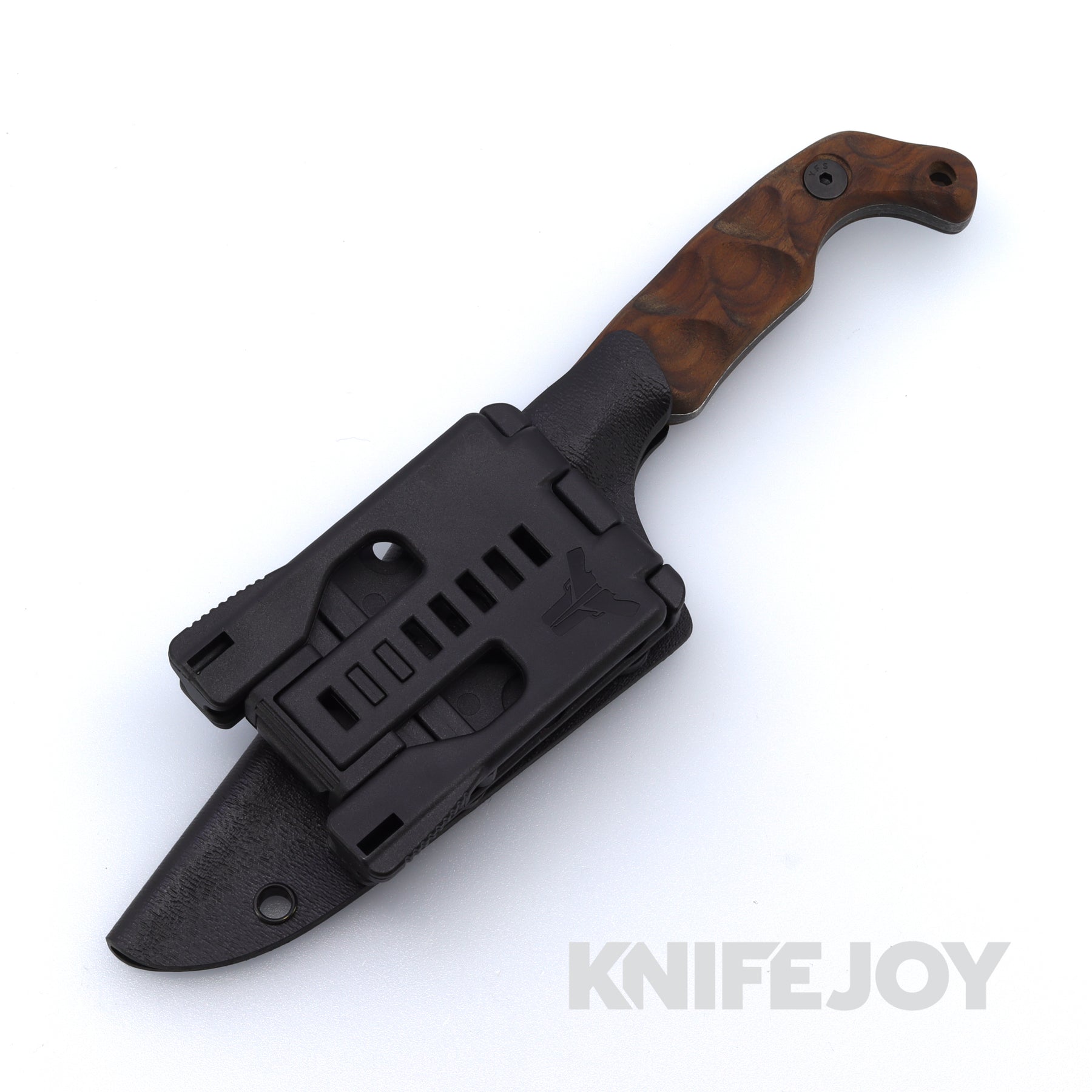 This knife comes with a Kydex sheath so you can carry it on your belt or backpack strap. In either the horizontal or vertical position.