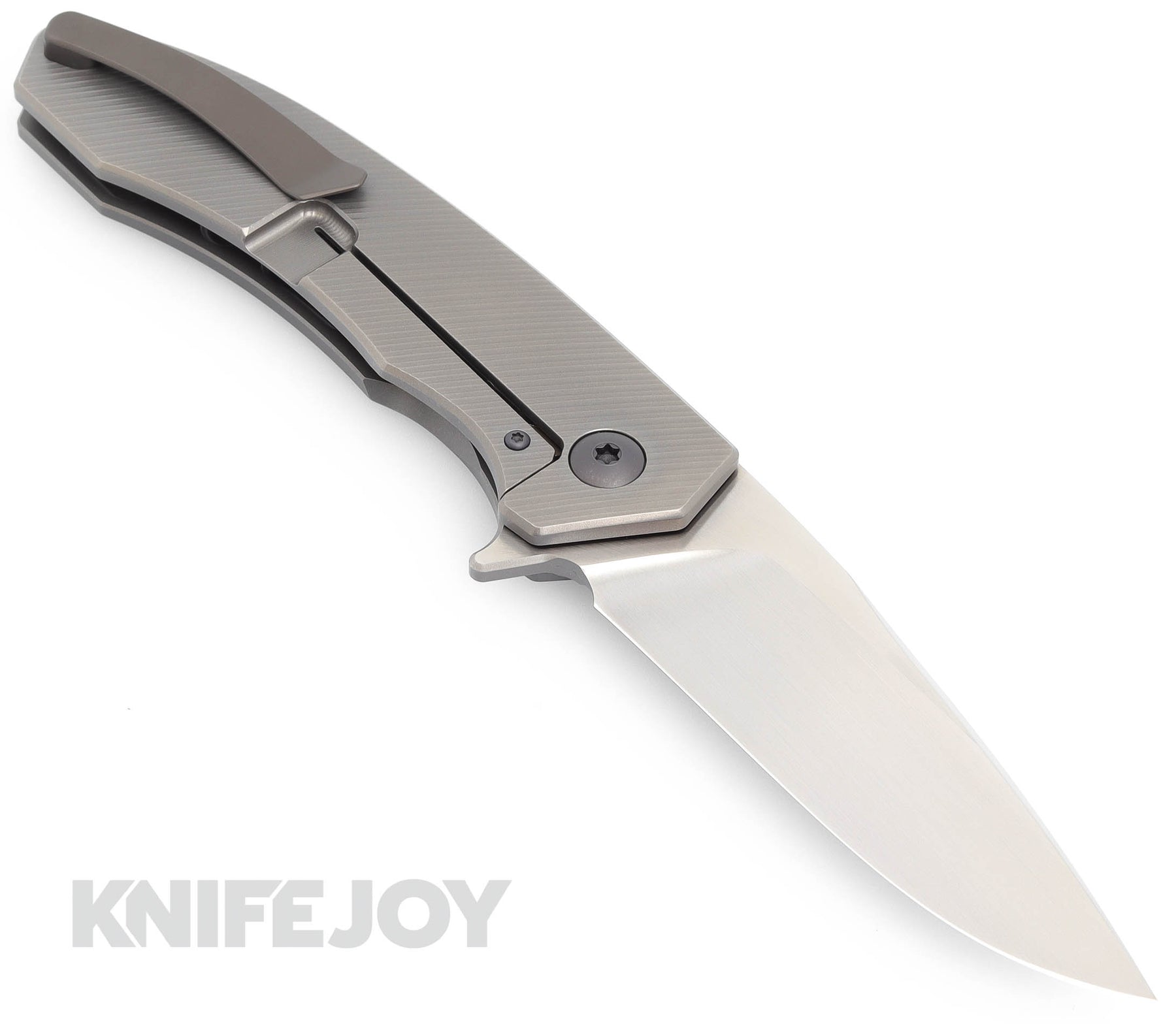 Trevor Burger Custom Knives TBC-DAKAR05 DAKAR Flipper Folder Plain Satin Blade with Titanium Handles/ PVD Hardware and Clip
