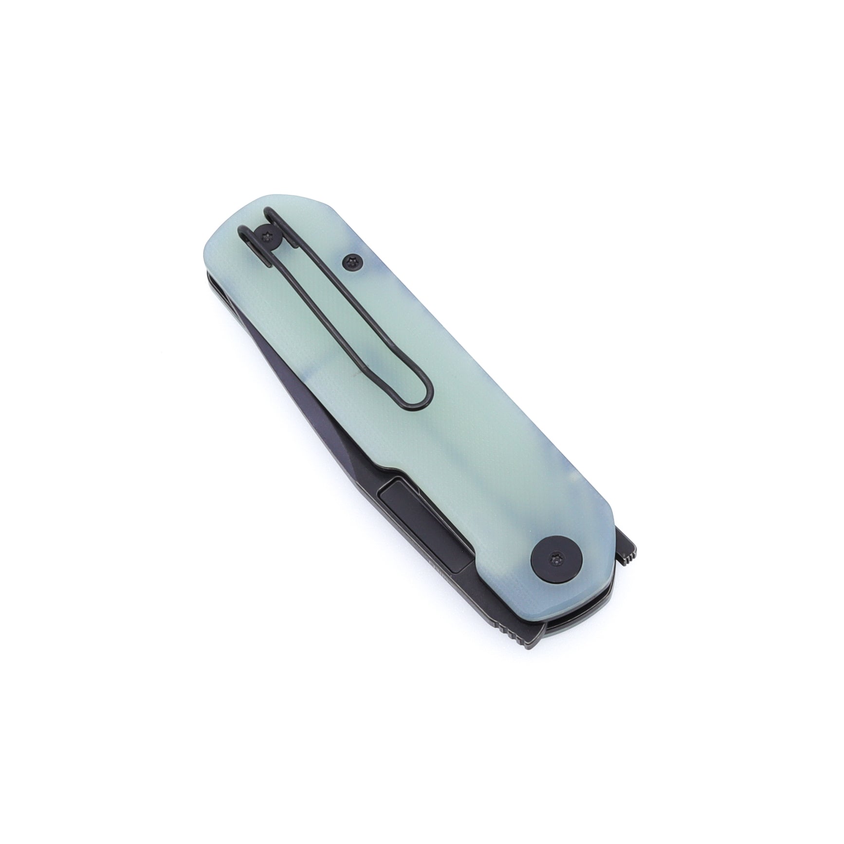 Built for the Hand While the Jade G10 scales provide a unique, semi-translucent look, they are primarily chosen for their durability and grip. The handle features deep chamfering to eliminate hot spots, ensuring a comfortable, ergonomic grip during extended use. The ambidextrous wire clip pocket clip ensures the Avid 1 sits deep and secure, making it an ideal choice for a "gentleman’s tactical" carry.