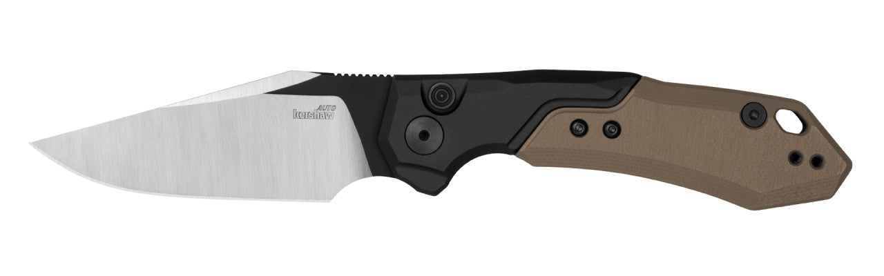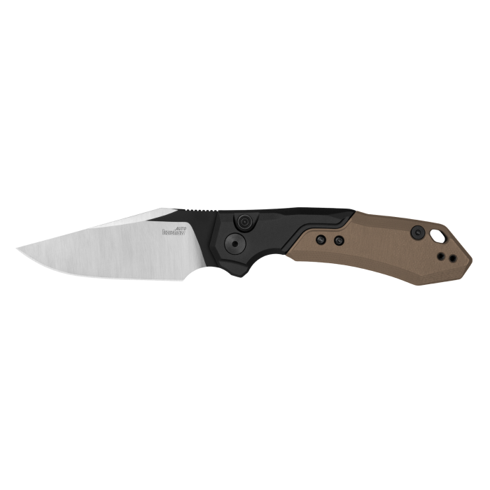 Kershaw 7851 Auto Launch 19 Automatic Folder Two-Tone Clip Point Blade with Black Anodized Aluminum/ Earth Brown G10 Scales Handles
