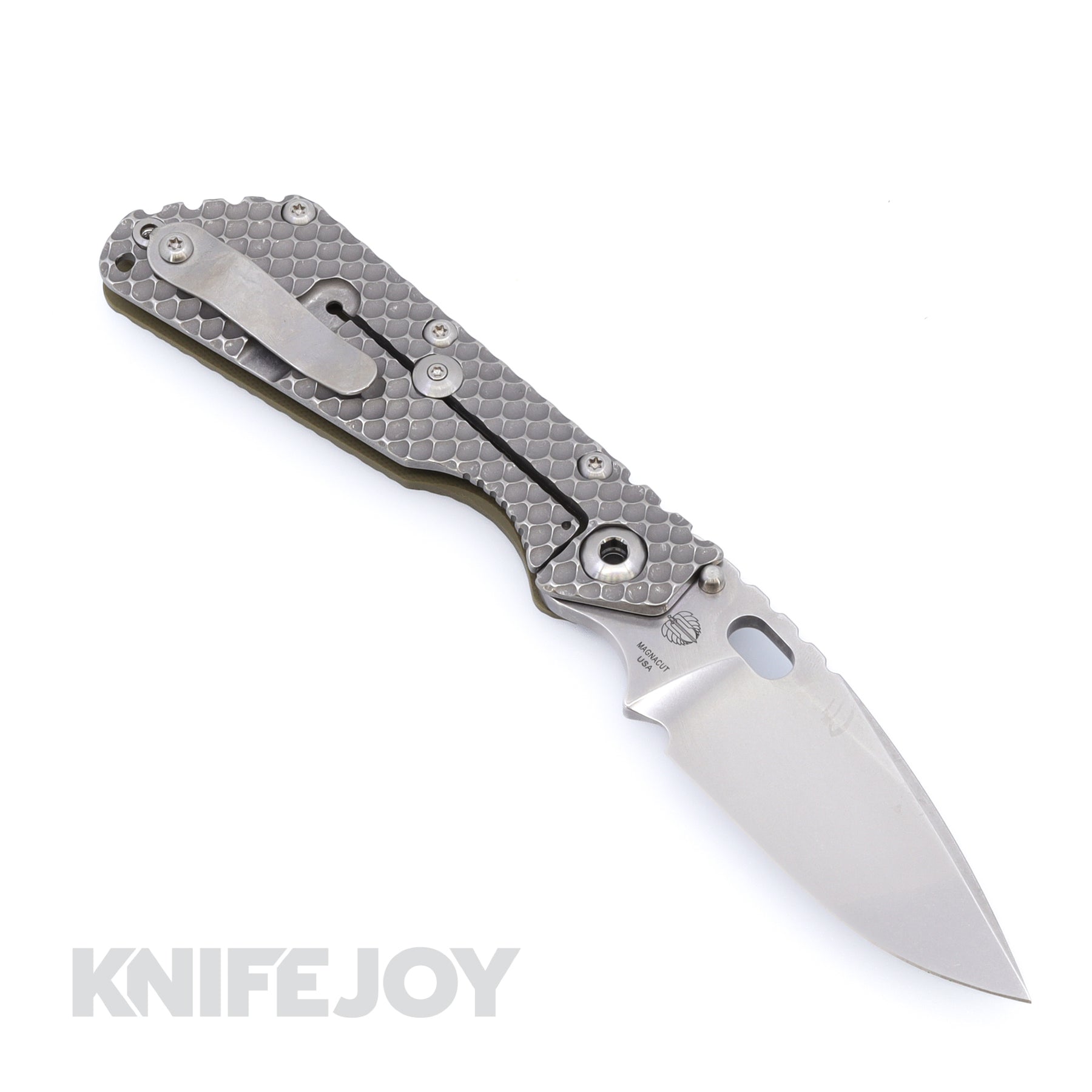This Strider SMF features the G10 / Titanium Double Gunner Grip combo. With the full DGG texture it is the grippiest grip of all the grips. It features a Stonewashed Magnacut blade and stonewashed performance hardware.
