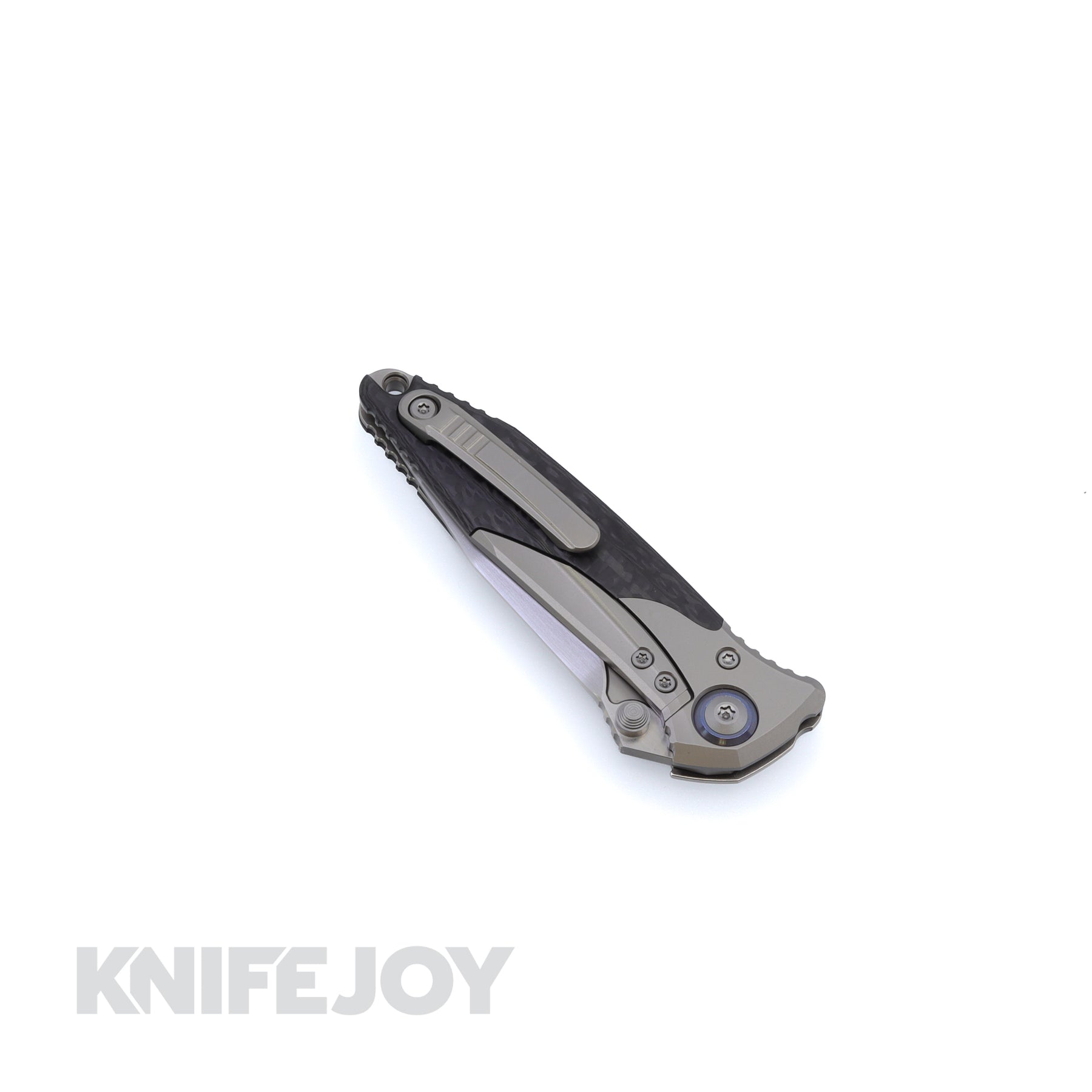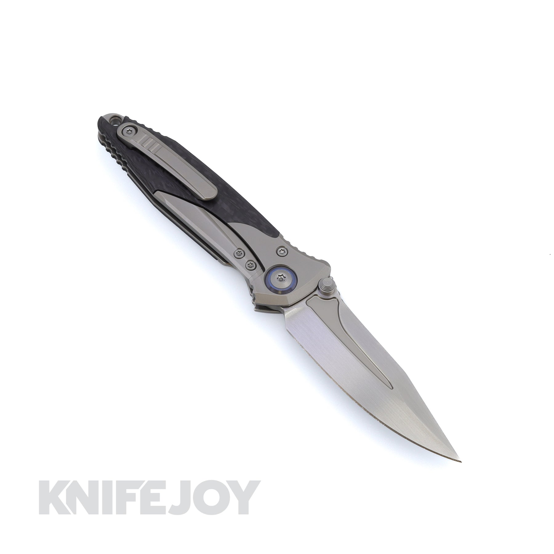Handle Material: Titanium Bolster/ Carbon Fiber/ Blue Pivot Collar