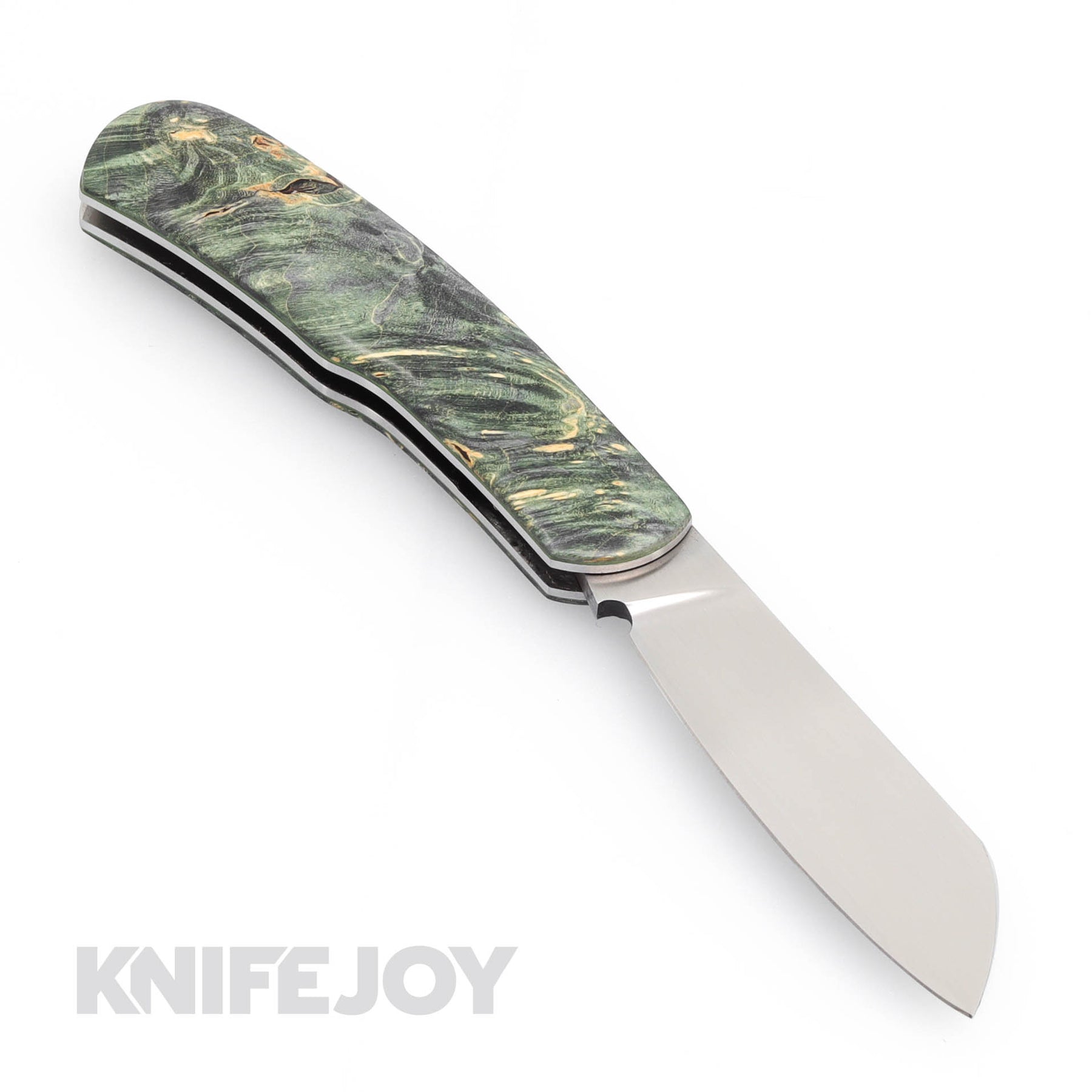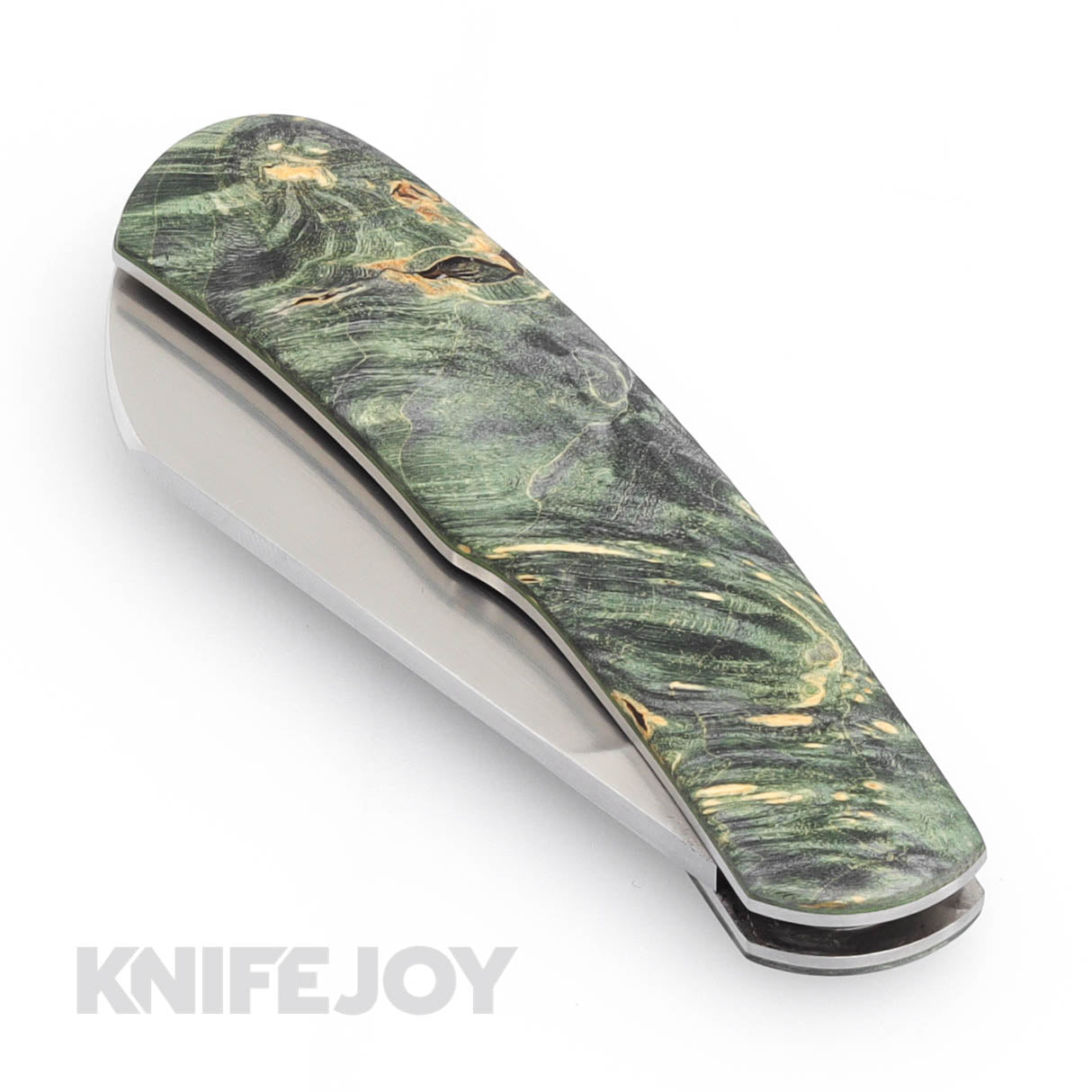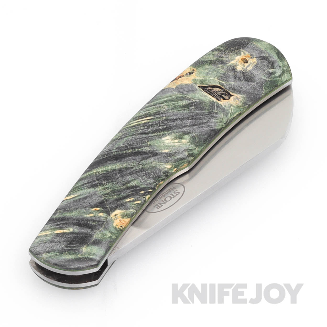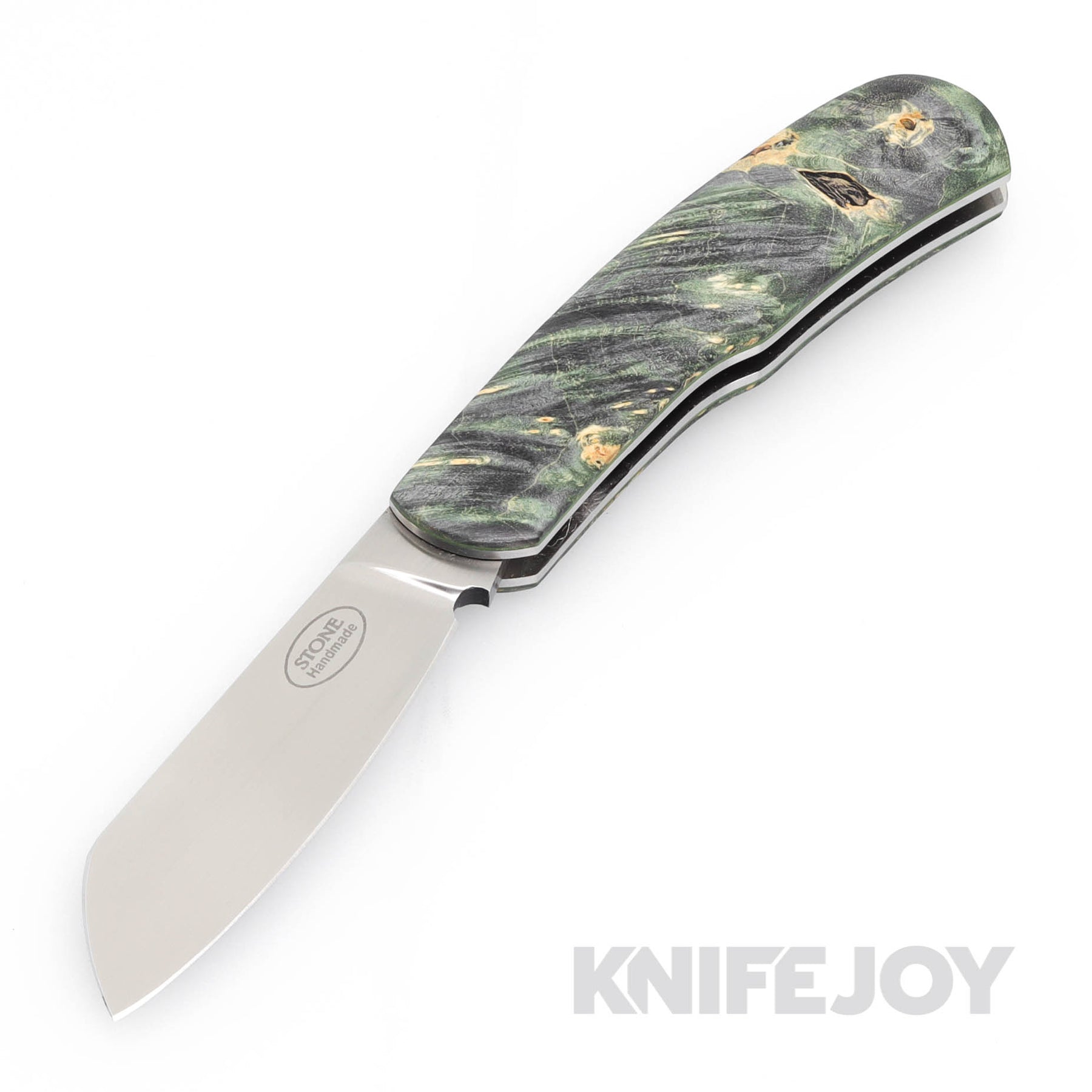 Tinus Stone STONE138 Gunstock Slipjoint with Green Dyed Maple Burl Handles/ Green Liners