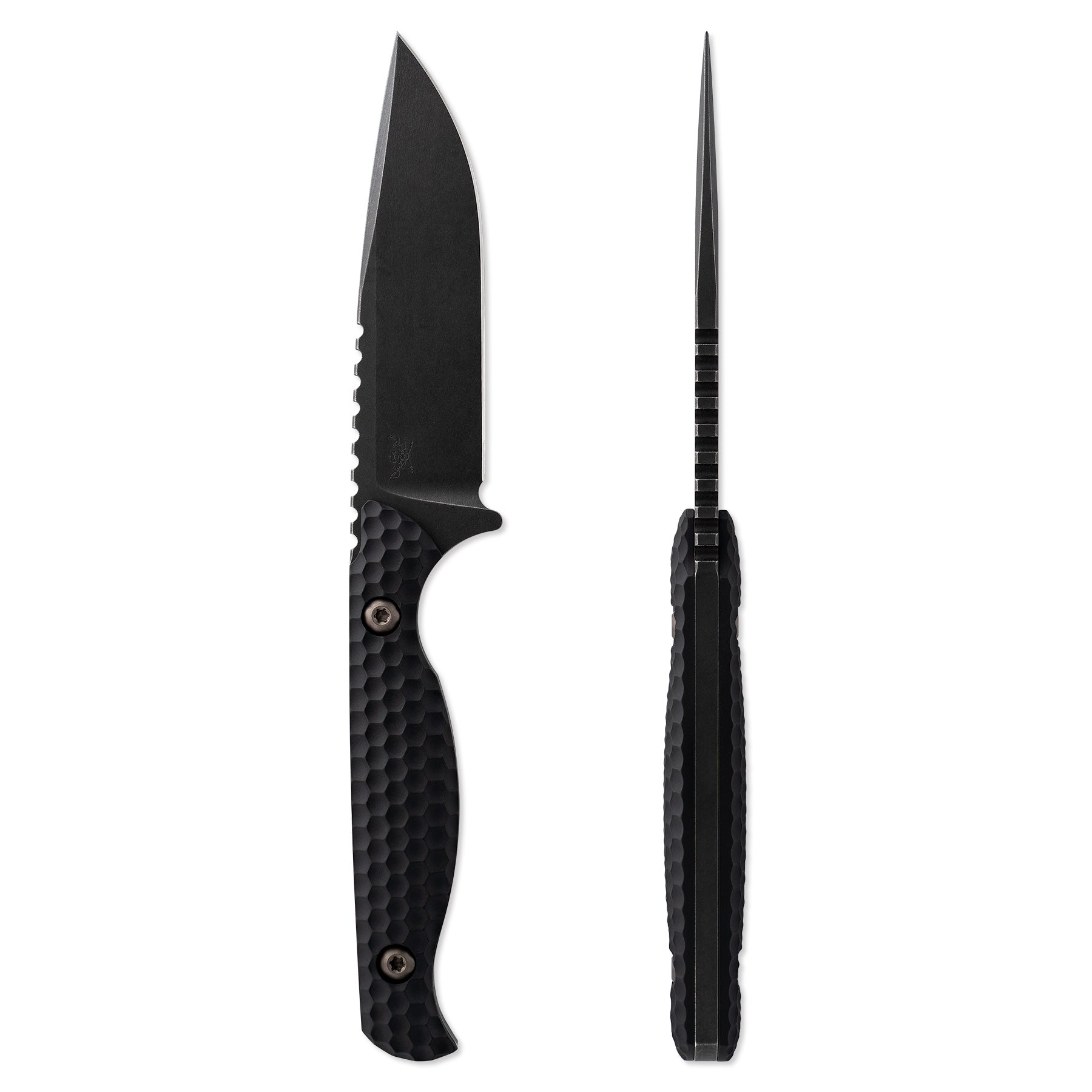 With an overall length of 8.5” and weight of 6.4 oz., the Mutiny was designed as a low-profile EDC tool and pays homage to the golden age of piracy, with some added modern flair. Made from CPM 154 steel, which offers better corrosion and wear resistance, this knife also features billet Aluminum 7075 scales that are 3D textured in a hexagonal pattern and provide additional grip on the high seas. Each handle scale is individually anodized leaving it with a premium color and finish. Additionally, each piece of hardware on The Mutiny is bronze PVD coated 303 stainless steel to ensure absolute structural integrity add value to your ship’s plunder!