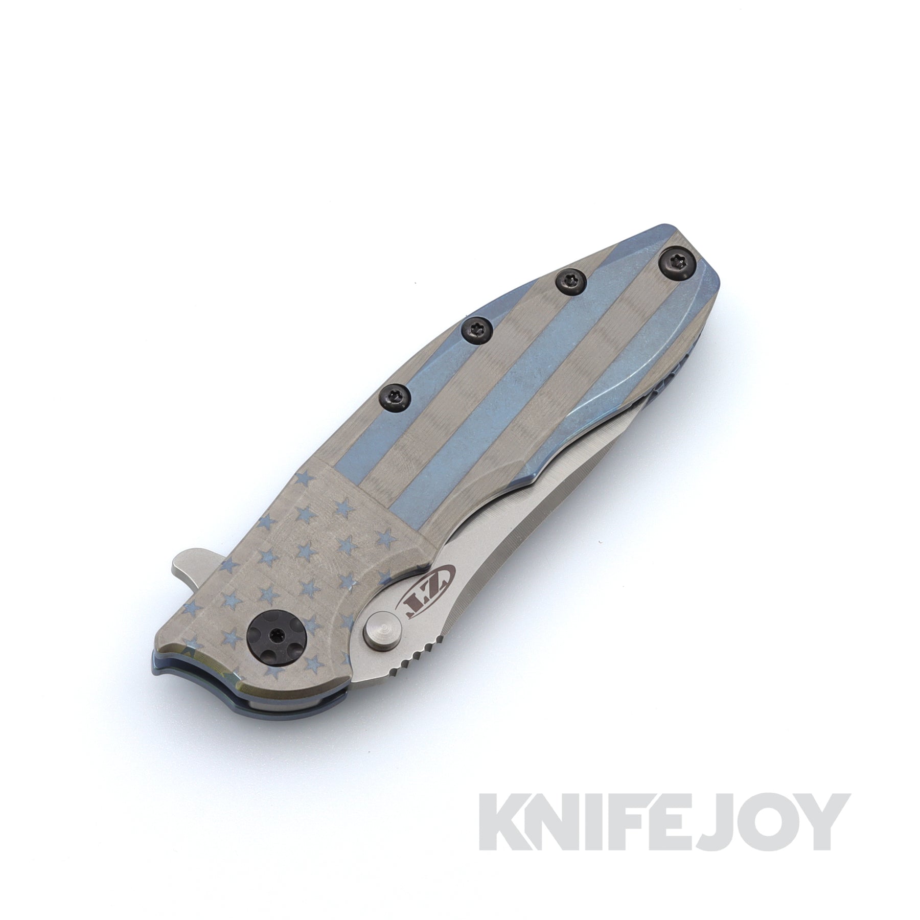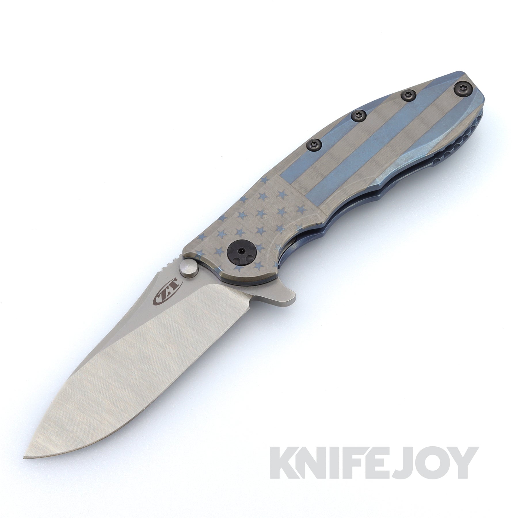 In addition to the Boatright Bladeworks Custom laser color titanium handle, the 0562TI offers a premium CPM 20CV steel blade with Rick's exclusive Hinderer "slicer" grind. This blade grind gives you both slicing efficiency and a tough point. The 20CV powdered steel blade provides high wear resistance and corrosion resistance—enabling a hair-popping edge that lasts for a long time, even under hard use. For good looks, ZT gives the blade a stonewashed finish on the flats and a machine satin finish on the grinds.