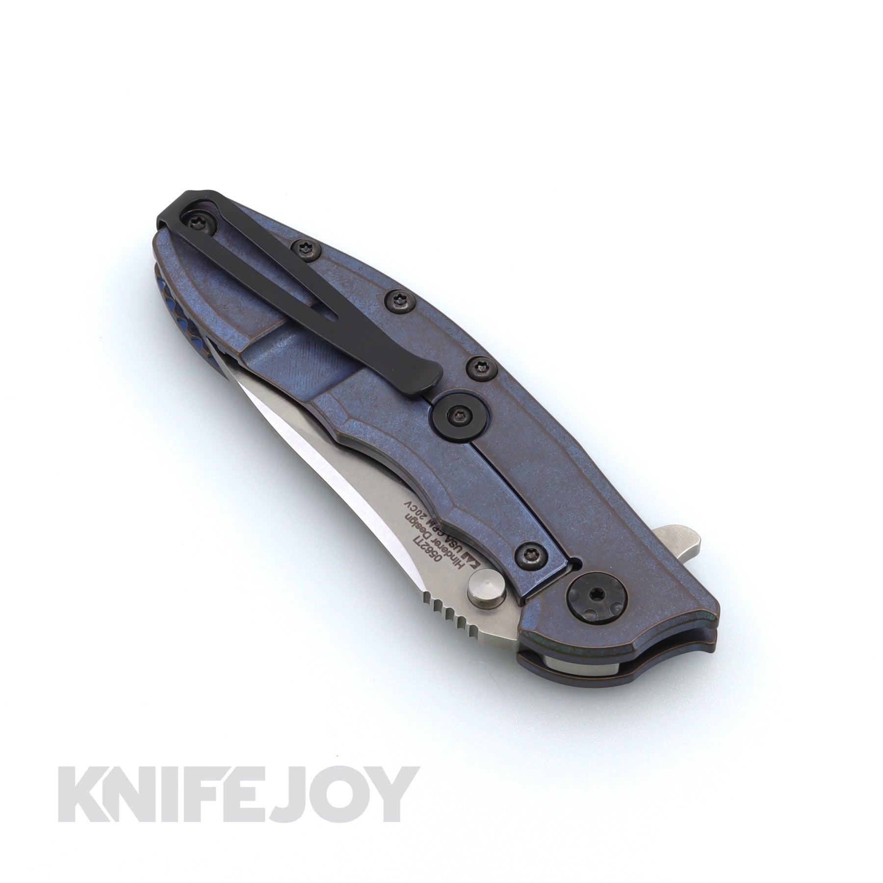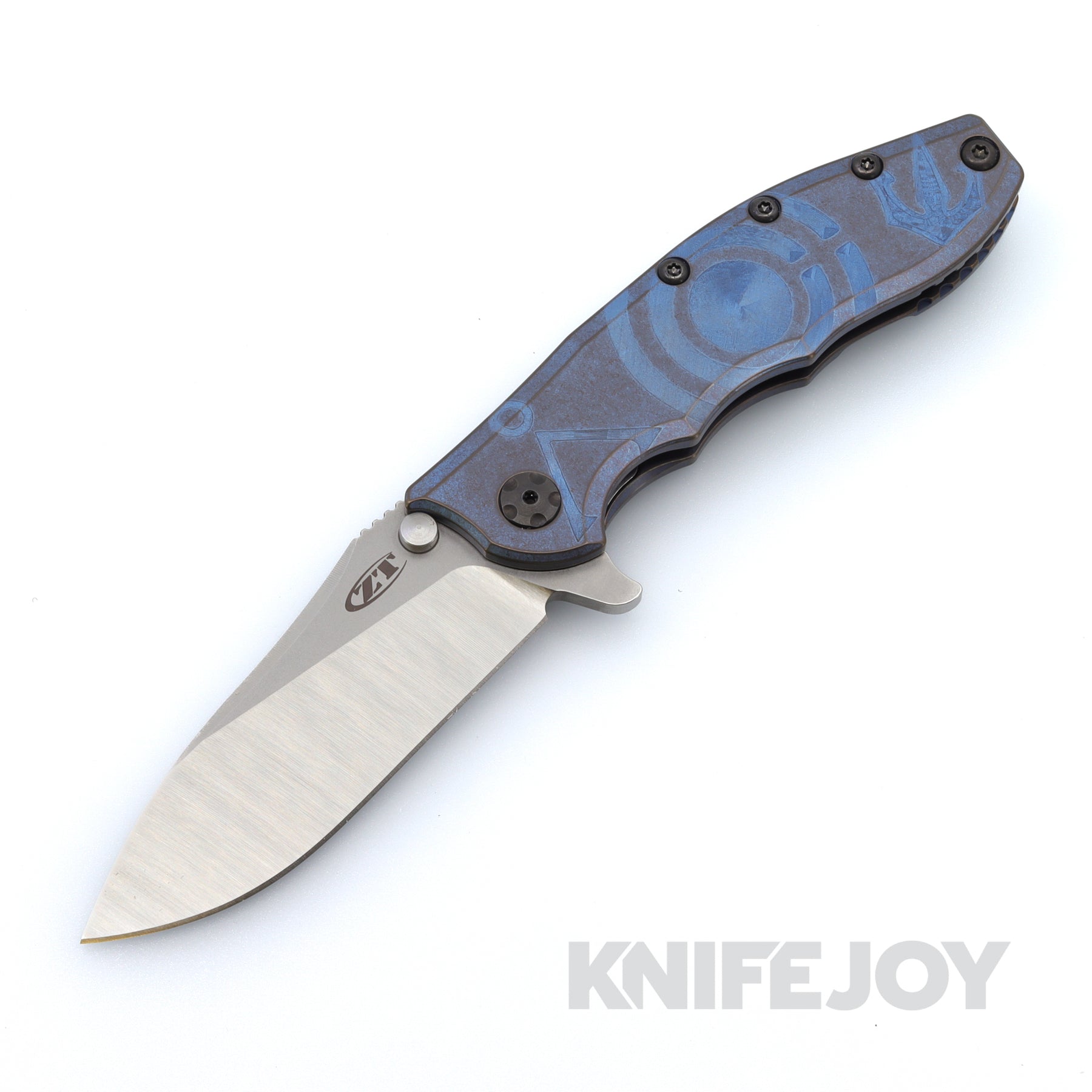Zero Tolerance ZT 0562TI Rick Hinderer Design CPM-20CV Blade and Titanium Handles with Boatright Bladeworks Customs Blue/Bronze Engraved Atlantean Pattern